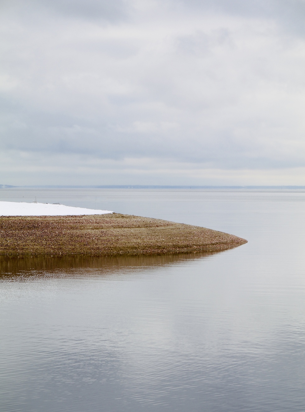 COLOR PHOTOGRAPHY OF SNOW COVERED BEACH BANK