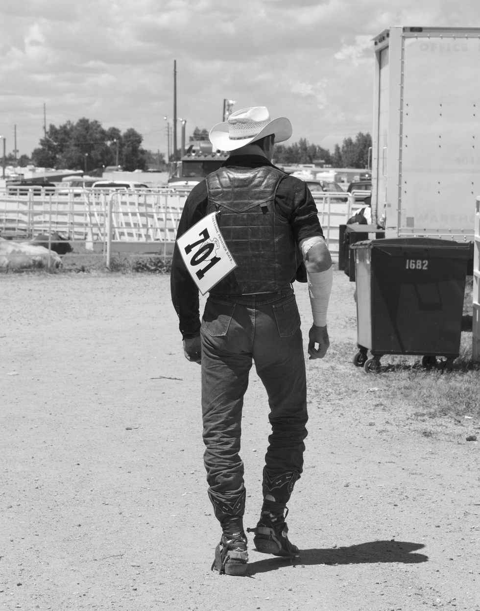 Rodeo contestant had completed his ride and heading back to his trailer
