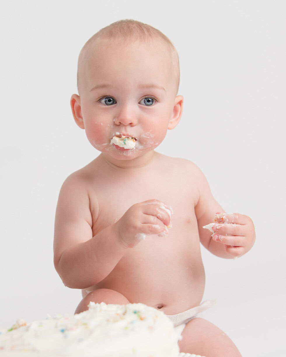 Photograph DescriptionThis is that split-second glance babies give their parents—the are-you-sure-I-can-do-this? look, as if they’re checking for permission before diving into chaos. In this portrait, cake-smeared hands and frosting-crowned cheeks tell the story of a first birthday that’s equal parts sweet and mischievous. To me, this photograph is about the pure, uninhibited joy of being a little rebel at the very start of life’s messy adventure.