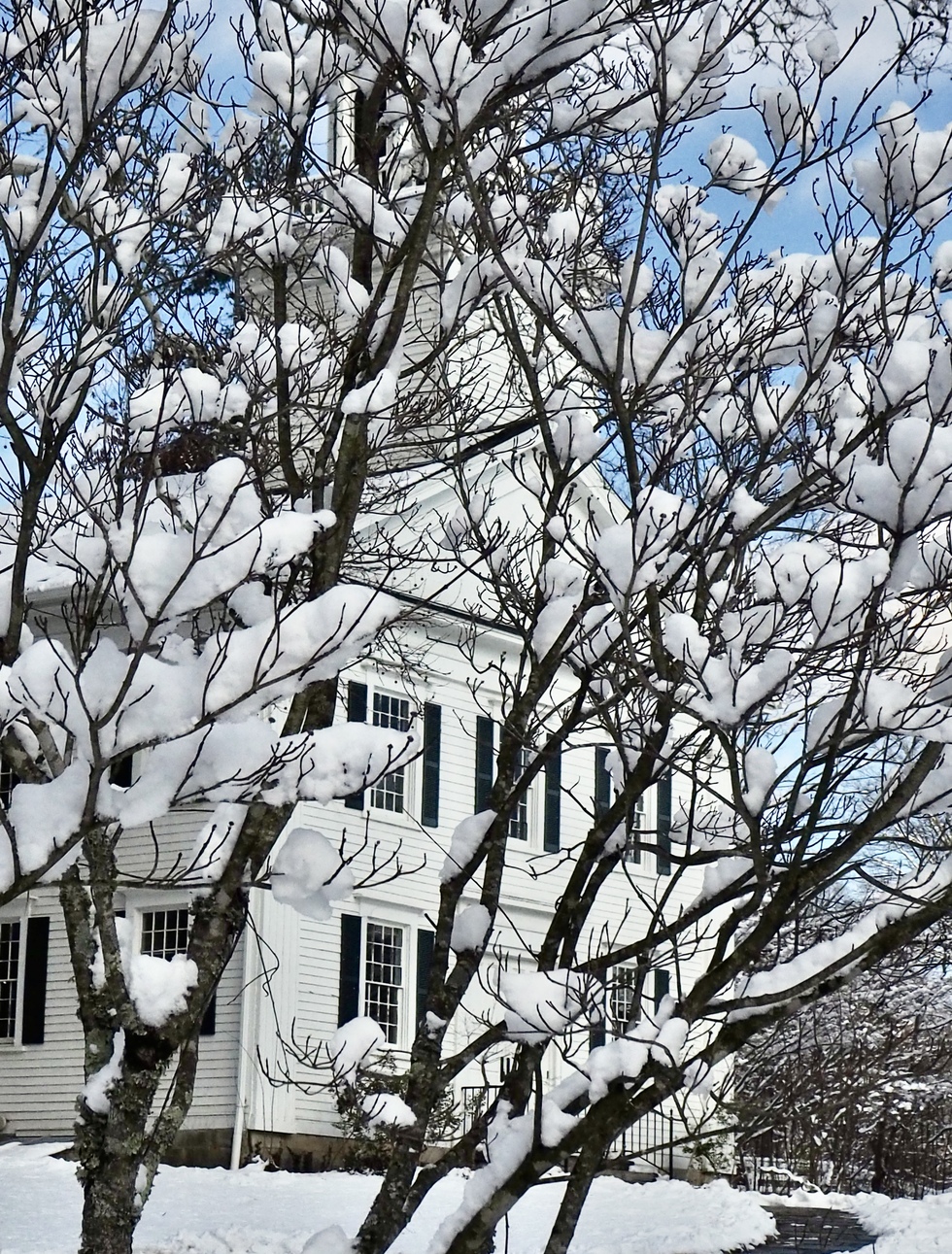 I wanted to take a picture of all the snow we got this winter. I noticed how so many of the trees looked liked they had cotton puffs on their branches - something that I hadn't really noticed before. I also thought that it looked pretty cool. So one afternoon I drove around looking for great looking cotton snow puffs. I found some on the grounds of the Congregational Church of Easton.