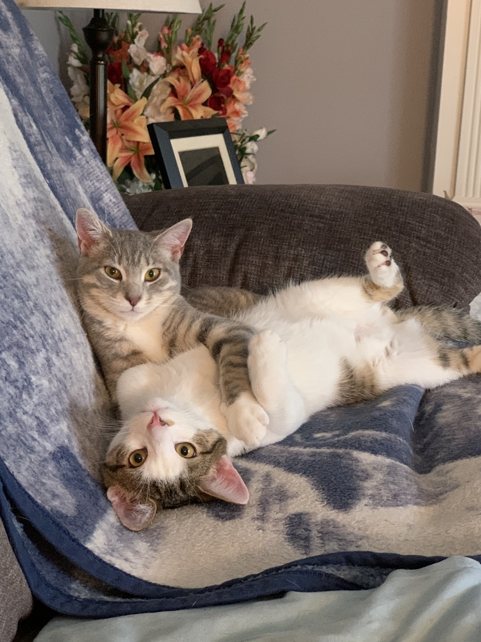 What… we weren’t doing anything ;-). We adopted Poe and Rey from fancy cats three years ago after losing our two 15 year old kitties. The make us laugh every day and are faithful alarm clocks when they want breakfast in the morning. We would not have it any other way!