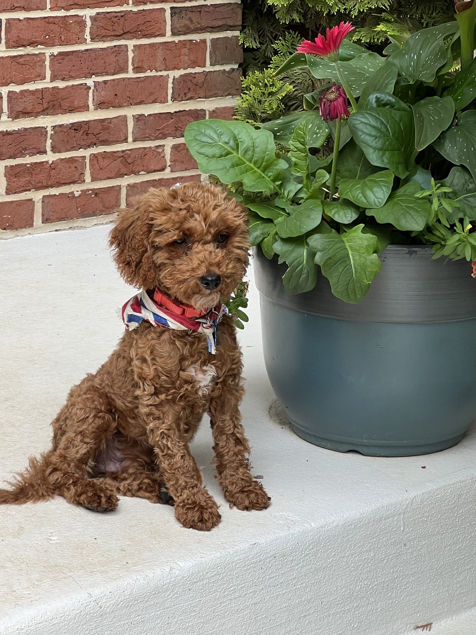 He’s a rescue who was originally named Wasabi but when we adopted him we thought he looked like a little teddy bear - so we named him Cuby. We have two other dogs who have welcomed their new little brother.