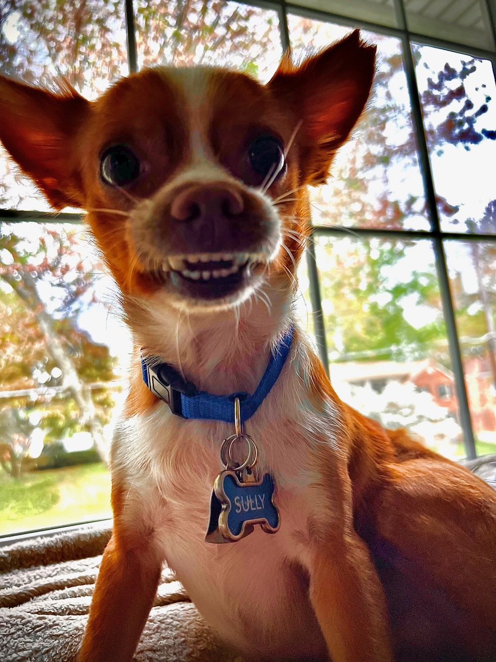 Sully was adopted from Fancy Cats and Dogs Rescue. He was in bad shape with flea damaged skin, ear infections, a few decayed and infected teeth and malnourished. Fancy Cats and his foster family were wonderful and provided the love and care he needed. He has developed into the sweetest and most lovable dog we have ever owned. We truly hit the jackpot and look forward to every day to experience his hilarious antics.