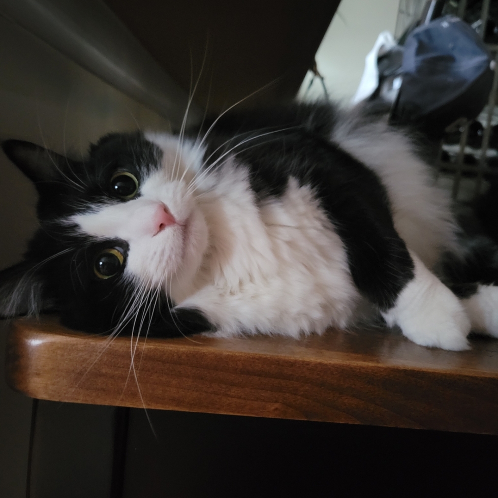 Found on Petfinder, Mia was rescued from a shelter in Bourbon Co KY and transported to Fredrick MD for adoption. Her personality is 100% Diva and she is definitely the Queen of the house. She’s a total mouser and loudly vocalizes her (toy) captures. We love our sassy beauty!