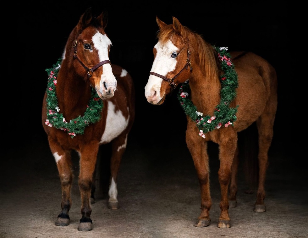 Rocky is a 25 year old paint and Outlaw is a 26 year old quarter horse. Rocky is strong, healthy and rotten as he has been the 18yrs we have had him. Outlaw has Cushing Disease and Lyme Disease which causes him to have joint issues and weight loss. He is still going strong.