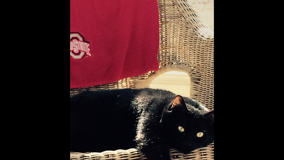 Cleaver was adopted in 2006, from the Gary Junks clinic. He has been a part of our family and always will be. He now weighs 23 lbs, but is still a good mouser, and he still thinks he's going to catch a bird, squirrel and rabbit. He has his own personality, being "raised" by a dog - sometimes he forgets he's a cat!