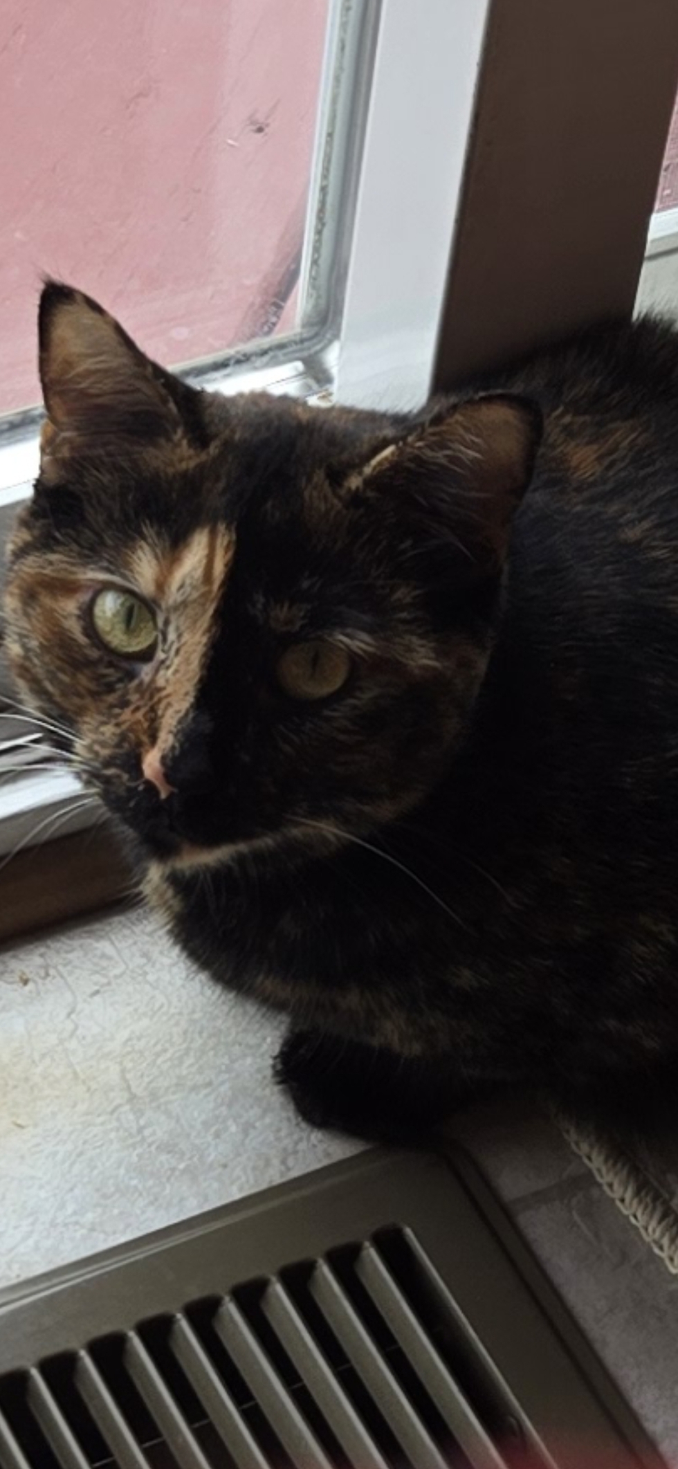 Pretty Girl is a shy girl who loves cuddling with her sister, and she absolutely lights up when her human grandma is near. Her favorite activity is exploring empty Amazon boxes when she's not playing with her sister.