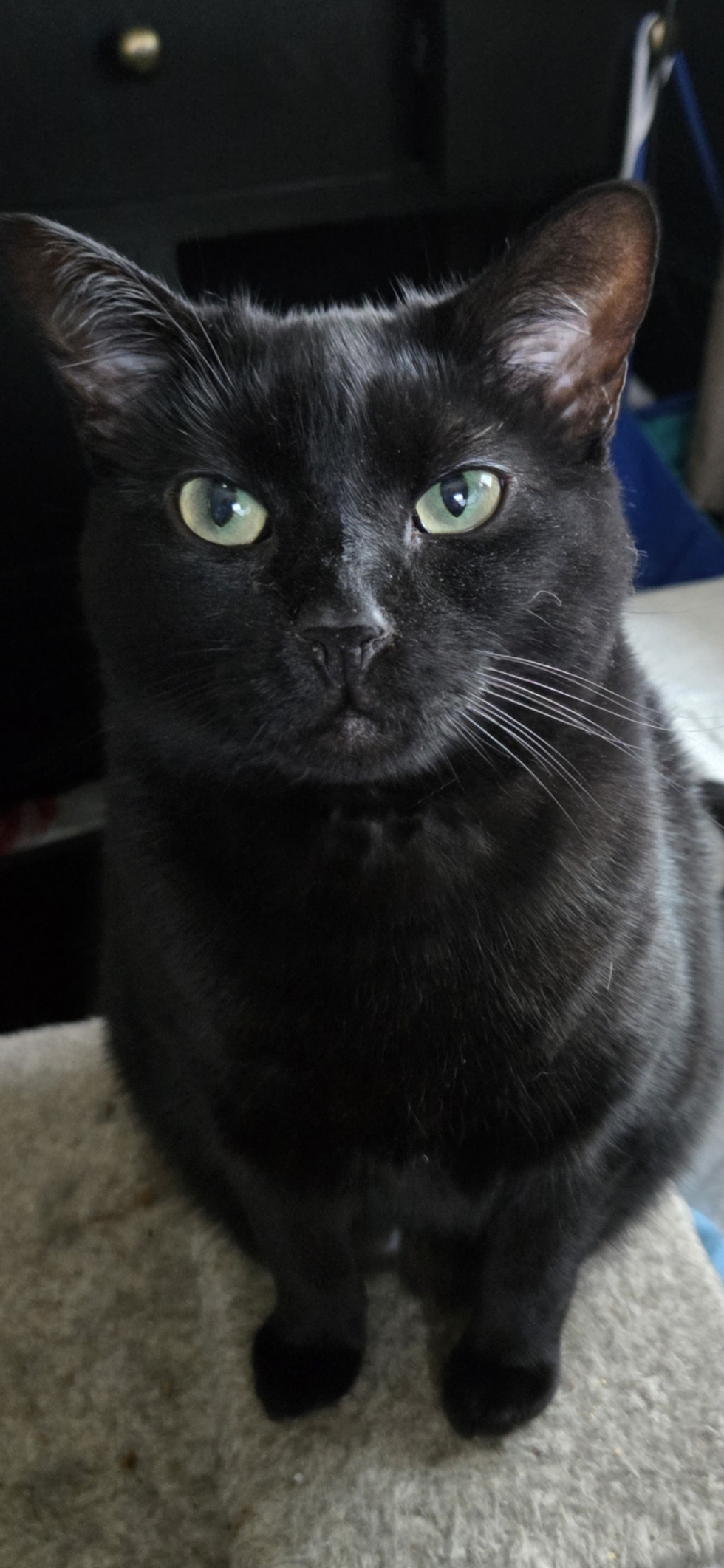 Cherry Pie's name says it all. She is the sweetest girl who will melt your heart in a second when she comes to your feet, requesting to be picked up. Her favorite pastimes are perching on her papa's shoulders while he carries her around the house and hunting squirrels from the window. In her free time, she bosses the other cats around and cuddles with her human mama on the couch.