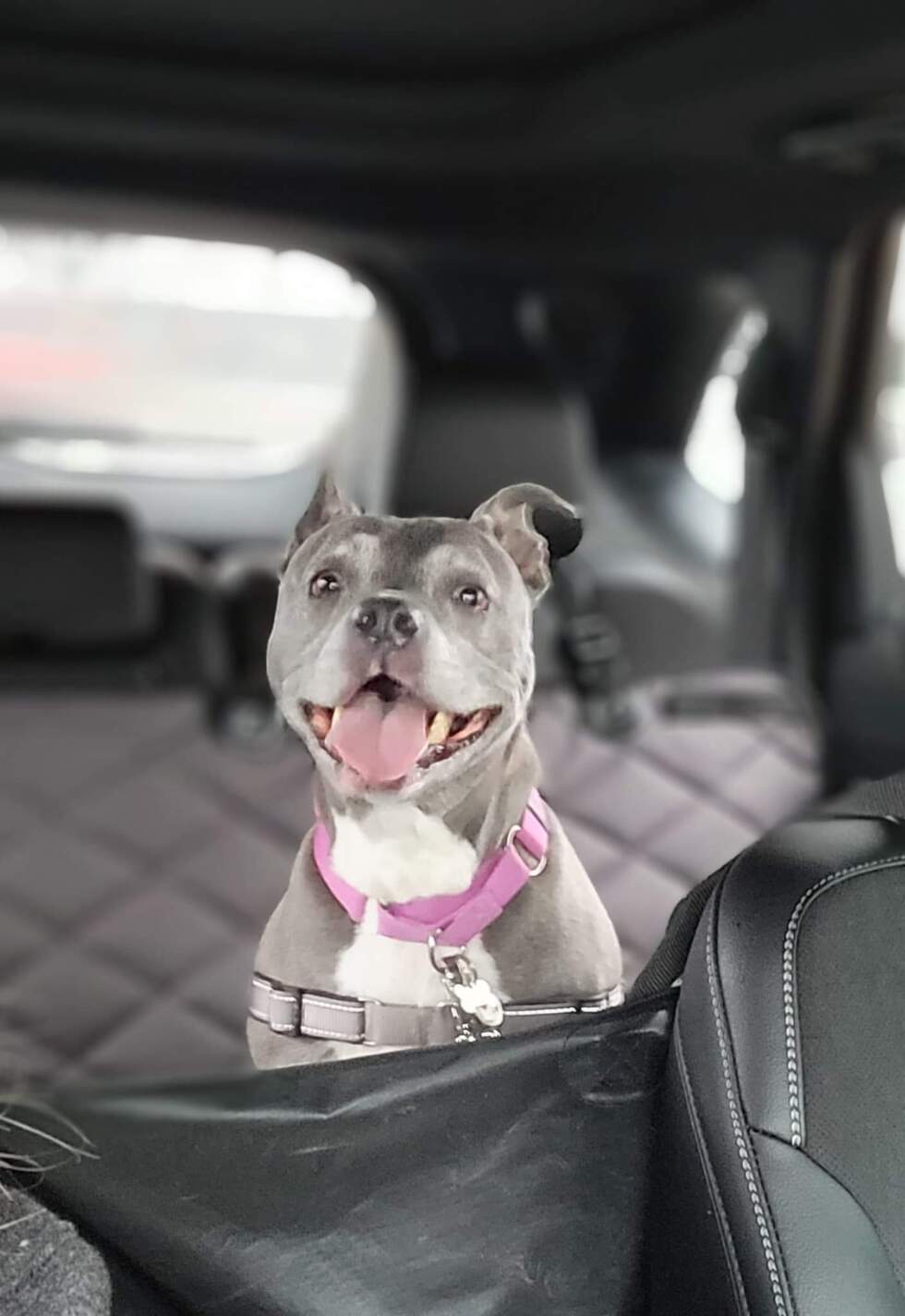 I love Grey Potato because she has taught me to love the Staffordshire Terrier breed. We always had boxers and she opened up up our hearts and minds to the most misunderstood breed. We can't imagine our lives without her beautiful smile and happy personality.