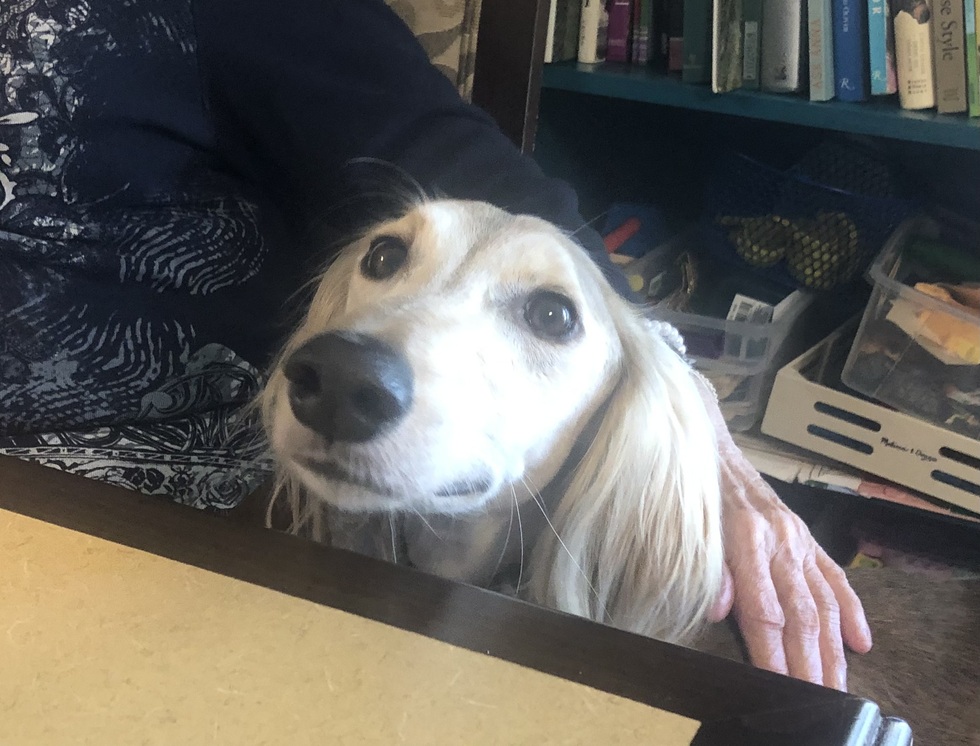 Yet, he loves people, all people. He makes regular therapy dog visits to a dementia unit. He’s able to calm residents when they’re stressed, and put smiles on their faces. They often forget their family, but always remember him. He shares his love of life with everyone he meets….in those deep brown eyes. Therapy visits give him unbridled joy, he gives everything he has to the friends he makes, and smiles the entire time ❤️. The picture was taken at a therapy visit.