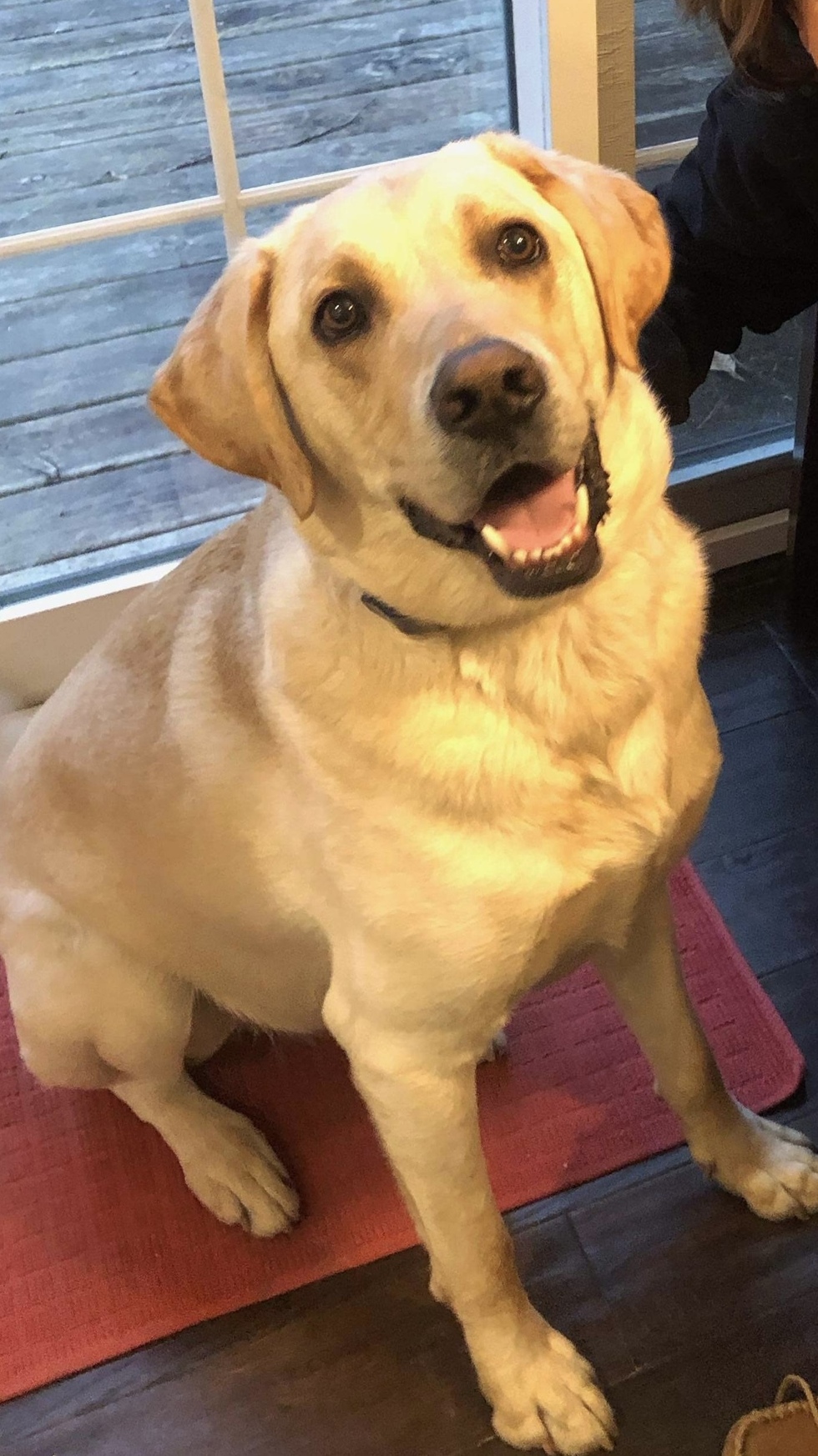 Big Henry, weighing in at close to 95 pounds, is pure joy! Formerly called "Dutch" he was surrendered by his owner, along with his brother, to a high-kill shelter in southern Indiana. He had lived as an outside dog and was underweight, heartworm positive, and had severe fly bites on both ears. He was placed on the Euthanasia list and pulled by Redemption Rescue, then transferred to Love of Labs. Big Henry was very anxious and chewed his way out of his crate at his first foster home. He was moved to another foster with a larger area for him to decompress, along with an enclosed area for him to exercise. We saw his happy face on Facebook, and we started fostering him in July of 2021. We then officially adopted him in October. He has really settled in and loves his home! His best friend is his feline brother Mikey Meowers (last year's contest winner!) and despite the weight difference (MIkey is a mere 11 pounds), they love to nap on the couch next to each other. Although Henry is much larger than Mikey, he understands that Mikey is the boss around here! Henry is your typical Lab...very smart, loyal, somewhat stubborn, and extremely protective of his mom! Wherever she is, Big Henry is by her side, protecting her from any potential danger! (Both inside and out) We can't imagine our life without Big Henry, and he is happy to support FIDO to help dogs in his community!