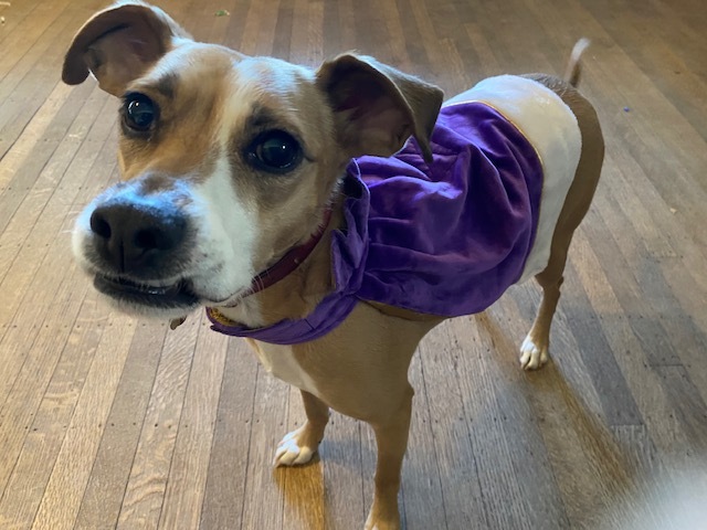 Jefferson is a dude with an oversized personality. He weighs only about 30 lbs but his personality is large-and-in-charge. My best guess is that he is a Chihuahua (thus, the big personality) mixed with a hound (thus, the overactive sniffer). He loves every new human he meets, regardless of gender, height, uniform, hat, weirdness, etc. However, he can be a stinker around other dogs, since the "large-and-in-charge" applies to every toy and treat within a 2 mile radius. He also likes to go by his Spanish name "Jefe" meaning boss-man. Even though No Kings is where most of our minds are these days, Jefferson does not adhere to that philosophy as evidence by the faux fur royal robe he is wearing in his photo shoot. P.S. He also has a super-cute lower canine snaggle tooth that adds to his charm.