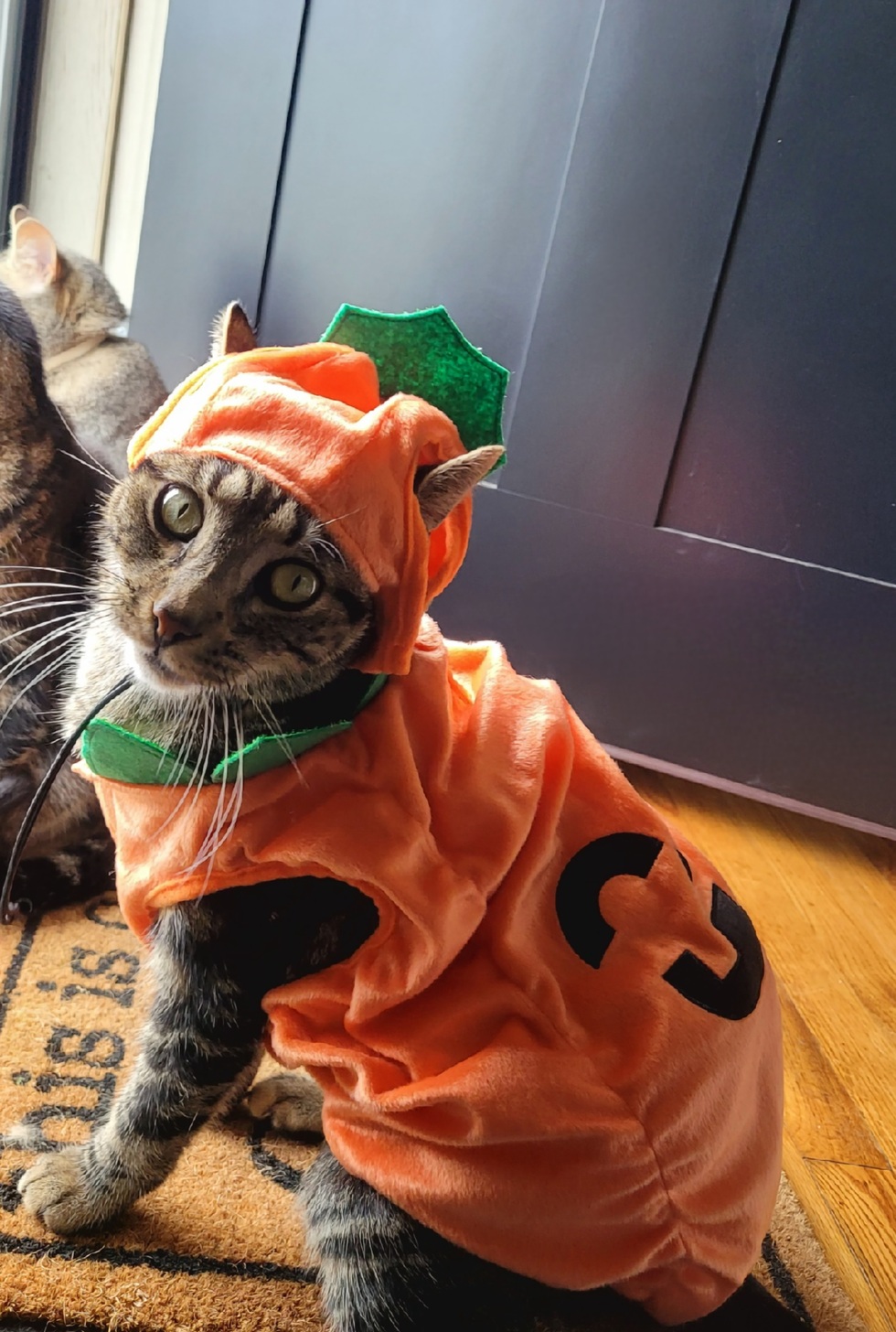 This is our strong boy Milo! He had FIP, and after 100+ days of treatment, he was better..after a few months, he started to get worse, and after many tests, we found out he now has hydrocephalus. He loves being outside, and going for walks in his stroller. He purrs 24/7 💗
