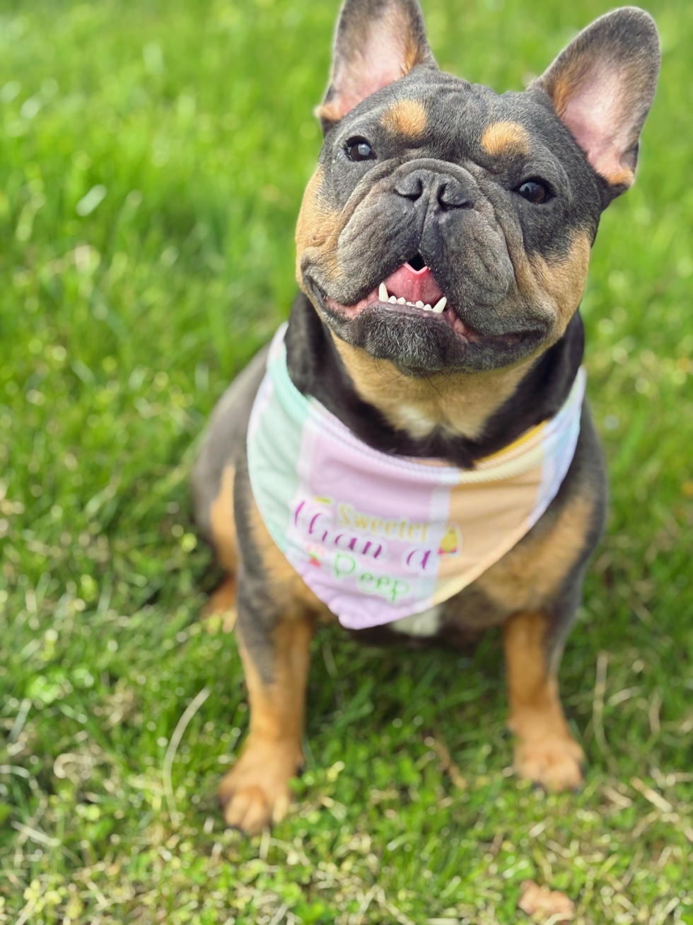 Rory is a sweet, spunky 2 year old French bulldog. He absolutely loves visiting with his cow friends, rides to McDonald’s, watching Bluey, and cuddling with his momma.