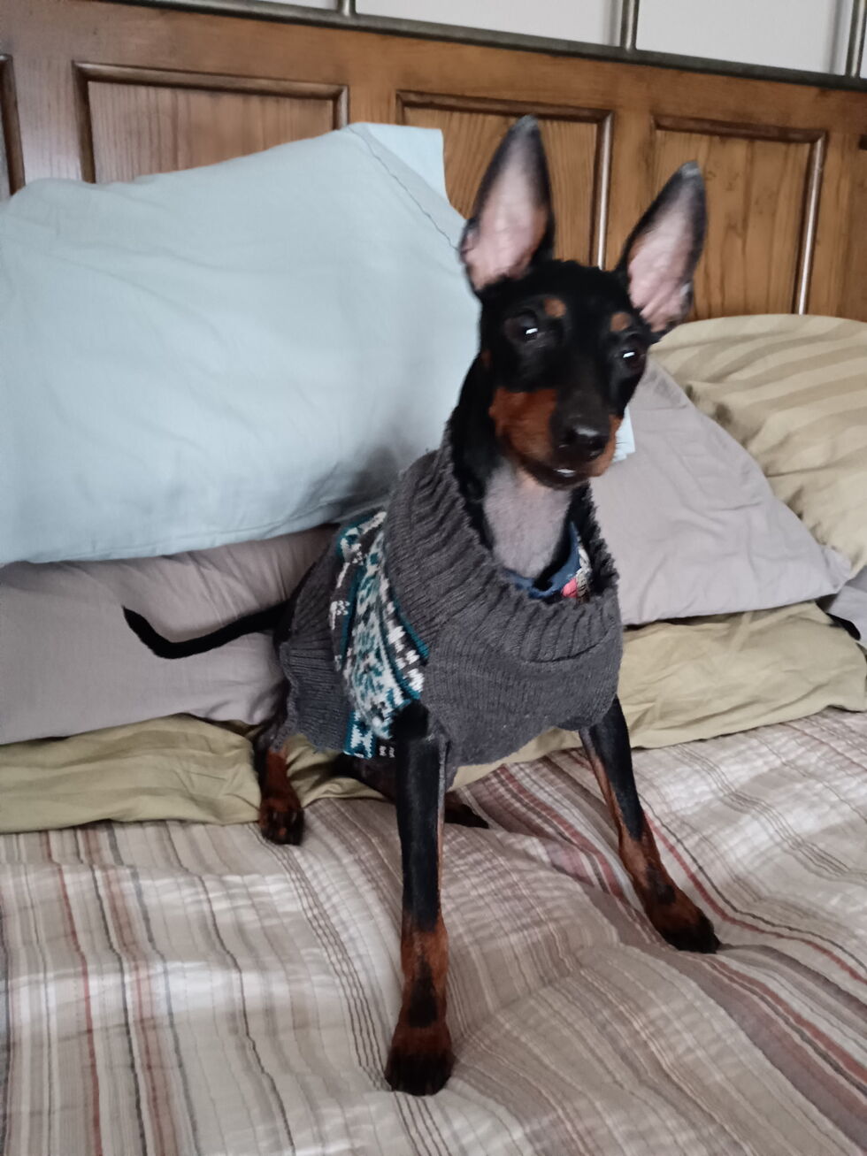 Hello everyone. My name is Dante, but I'm also referred to as "Stinkybutt". I turned 1 yr. Old on April 27. I am a Toy Manchester Terrier and I am full grown. I love going "bye-byes" and I really love going to the bank to get extra loving from everyone and the treats are great, too! I love dressing up and I enjoy going to baseball games to socialize with the fans. I presently have 3 certificates from AKC dog training classes and my goal is to continue my classes and make everyone so proud of me! My goal today is to try to raise lots of money for a good cause!
