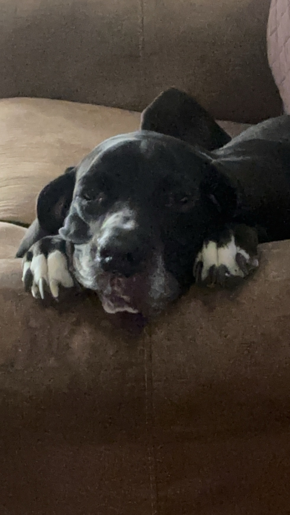 Bella is a registered Great Dane. She came to me from a breeder free of charge. Bella has had her share of medical issues. She is an amazing, kind and loving dog. She enjoys a good game of chasing the football with my grandson, playing tug-a-war, car rides any where, pup cups from every where and her favorite pastimes are performing zoomies and taking long naps!