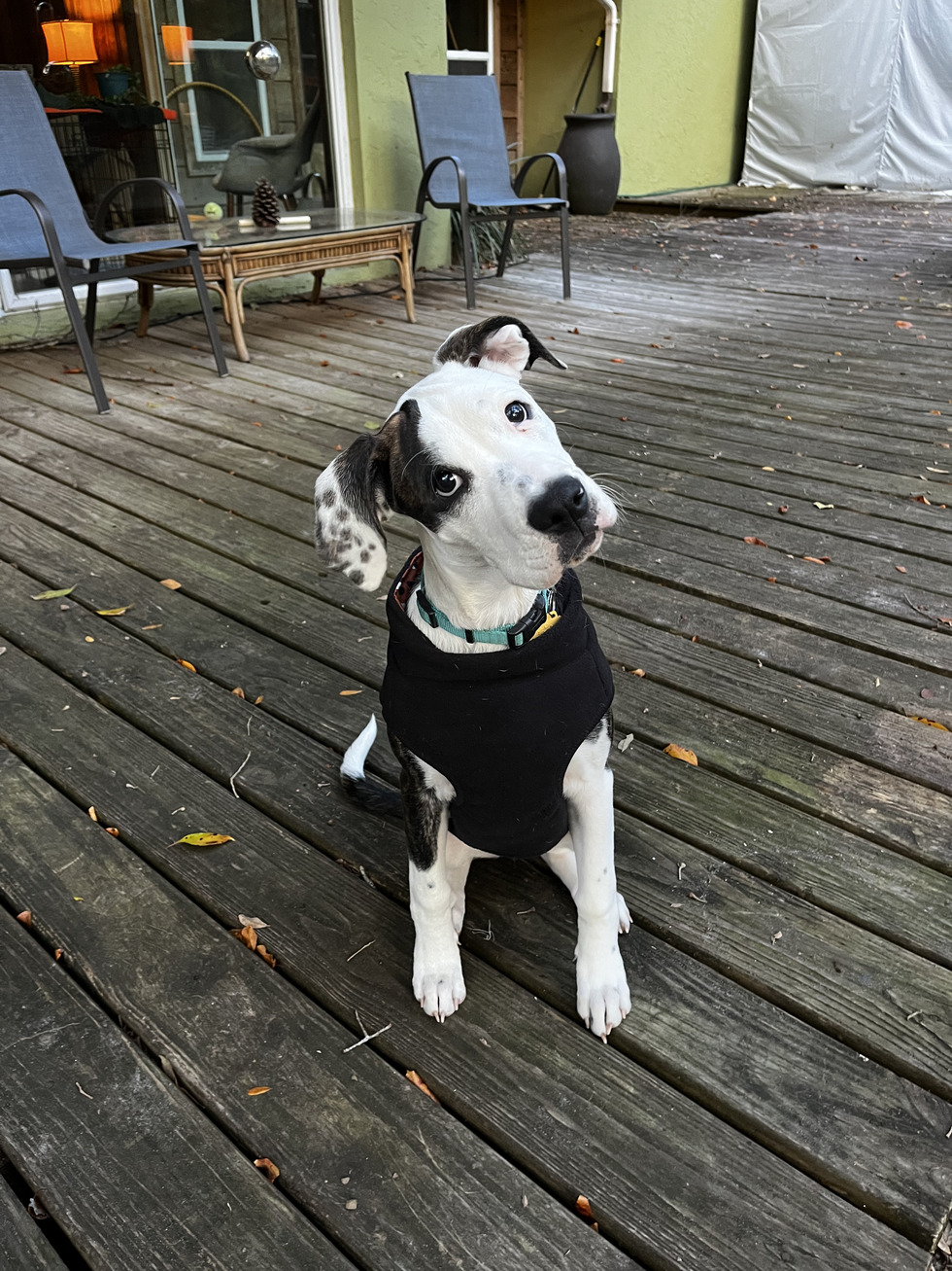 Izzy was found just days old with her litter mates and Momma in a construction sandpit in Texas. Momma Luisa was emaciated and the pups were barely hanging on. After a 16-person transport to Ft Myers, Izzy and her littermates were cared for by the McDaniel family. Izzy was the runt and had a difficult start. She had worms and a skin infection and needed special help to eat. But against all odds, she recovered. We saw the story on social media and reached out through the Boxer Angels of Florida to adopt Izzy. Now, busy Izzy is thriving. At 8 months, she just received her AKC Puppy STAR. She loves to snuggle and catch discs and balls and her best friends are a pair of donkeys. She is destined to become an agility star and therapy dog. Now, we can't imagine life without her.