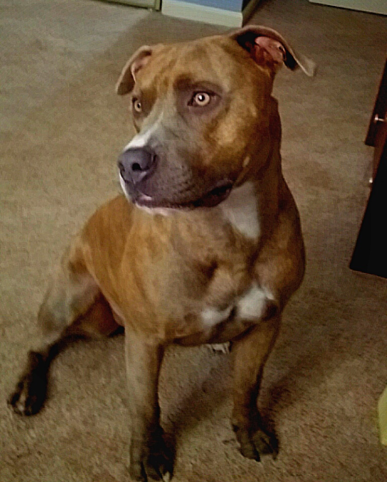 Blue is a rescue. He is afraid of people but is overcoming his fears with moms help.