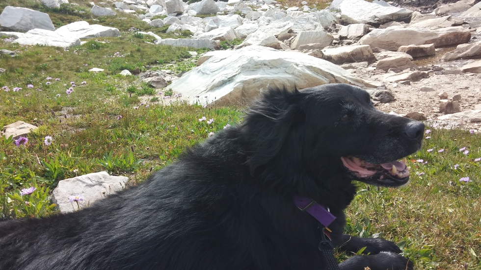 This is Elbie, she is chilling by a lake in the Snowies after a short hike last summer. She's been with us for 13 years so far, and every one of them was better because of her. We love her so much. She has developed a nerve condition that has made her skull muscles atrophy, so her head is now lopsided and eye is beginning to droop. Finding this picture made my heart sing, please help me get her in the calendar so everyone can see what a beautiful girl she is.