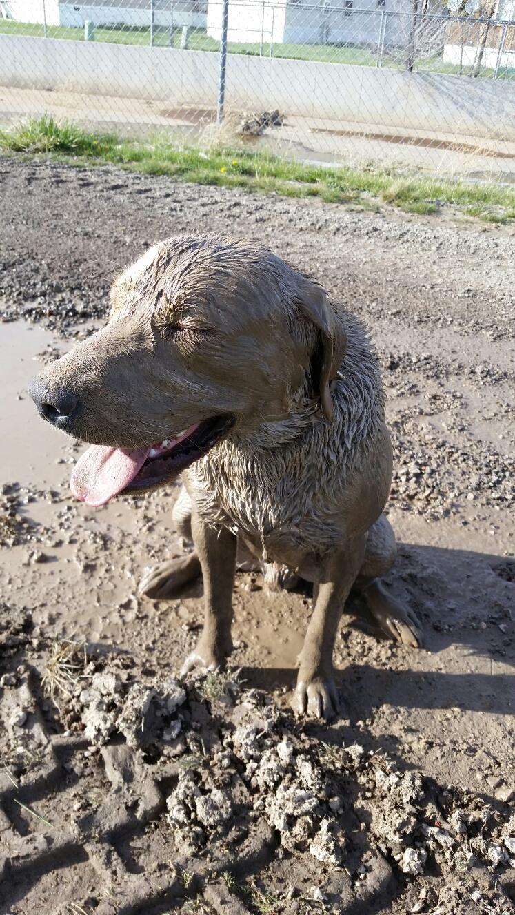 Dax is a very loving and hyper yellow lab, and one day while we weren't watching, he decided to find a mud patch to play in at our neighborhood park.