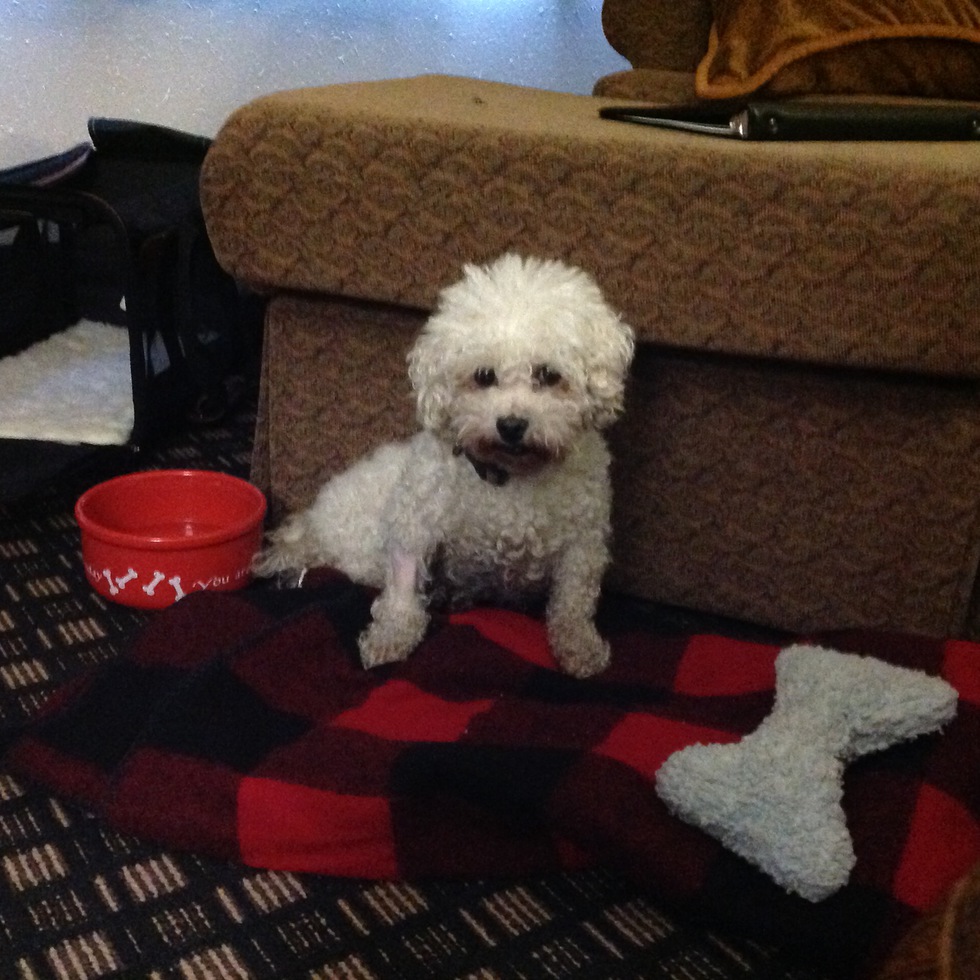 Emma was rescued about a year ago from a puppy mill in Iowa where she was kept in a small cage for seven years breeding puppies for profit. She was finally relinquished to a kind woman who travels the Midwest when she could no longer produce puppies profitably. Everything is new and scary to Emma. The grass under her feet, leaves falling from the tree, doors, windows, even me. It has taken a long time to gain trust but finally she will walk through an open door and approach me if I am sitting. Although advised that Emma would likely never walk on a leash, Emma loves going for walks. Since confined to a cage for most of her life, she had to start with short walks around the block and has most recently completed a two mile hike in the Black Hills. She is still extremely frightened of everything we take for granted. My greatest hope is to see her wag her tail which is something most fur kid parents see everyday. She has just started to give small tail wags every now and then which tells me she is beginning to enjoy life and love. Please adopt, don't shop. Most puppies come from puppy mills/breeders who care very little for the dogs who are producing the puppies. Most adorable little puppies come at the extreme suffering of a momma like Emma.