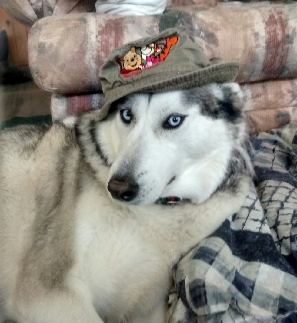 Hi my name is SkyLo Blue. I am a 6 yr old Alusky (Malamute and Siberian Husky) I am kinda shy but I love to go and visit with the folks at the Lagacy. I also enjoy swimming and going for car rides. Oh and I'm really smart when ever theres a thunderstorm I hide in the bath tub. Alusky power forever......