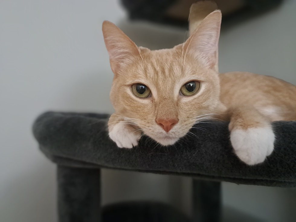I adopted Lou from Focus on Ferals in 2022. I helped my mother who fostered him rescue him from a barn as a kitten. I instantly fell in love with his sad long face, and decided to adopt him. He is not the sharpest tool in the shed, but he is such a sweet, affectionate cat that loves to cuddle. Some of his favorite things to do are play with toys and annoy his sister (Kitchen). There is never a dull moment when he is around. He is my fur baby and best friend. I am so thankful for him. 💗