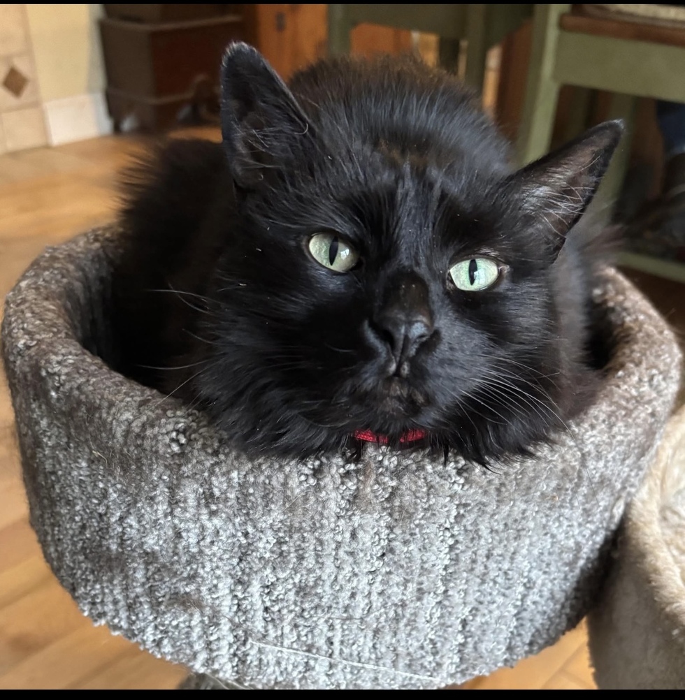 Mystic came to me from an adoption event at Petsmart. I was looking for a cat who would be good with dogs and she fit the bill.