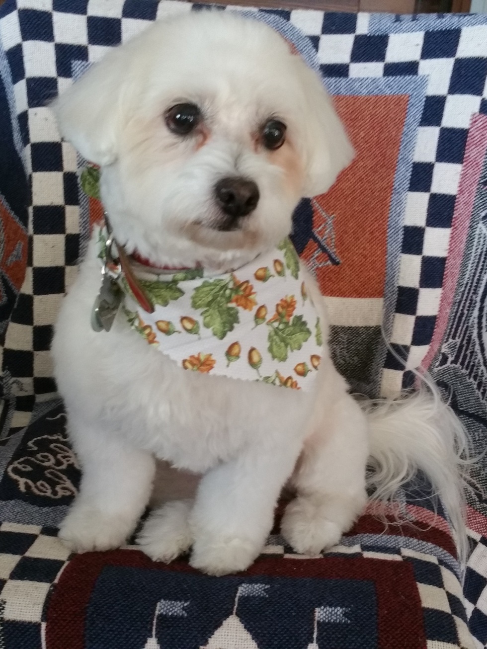 On October 22, 2017 we went to PACC and found this matted, quivering mess of a little dog in a cage with a sign that said "biter" so, of course we tried to adopt Molly, but they said we couldn't because she had not yet been spayed. Oh no! But we could take her home as a foster and then take her back for the surgery and then we could adopt her. Yay! Poor thing was such a matted mess that we took her directly to our groomer. When we went to pick her up we did not recognize the beautiful little dog who was waiting for us. She did have issues, she had likely been an abused puppy mill mom and she hated and bit men. She and I went to Obedience Class every Saturday for a year and a half. Result, the sweetest little dog ever!!