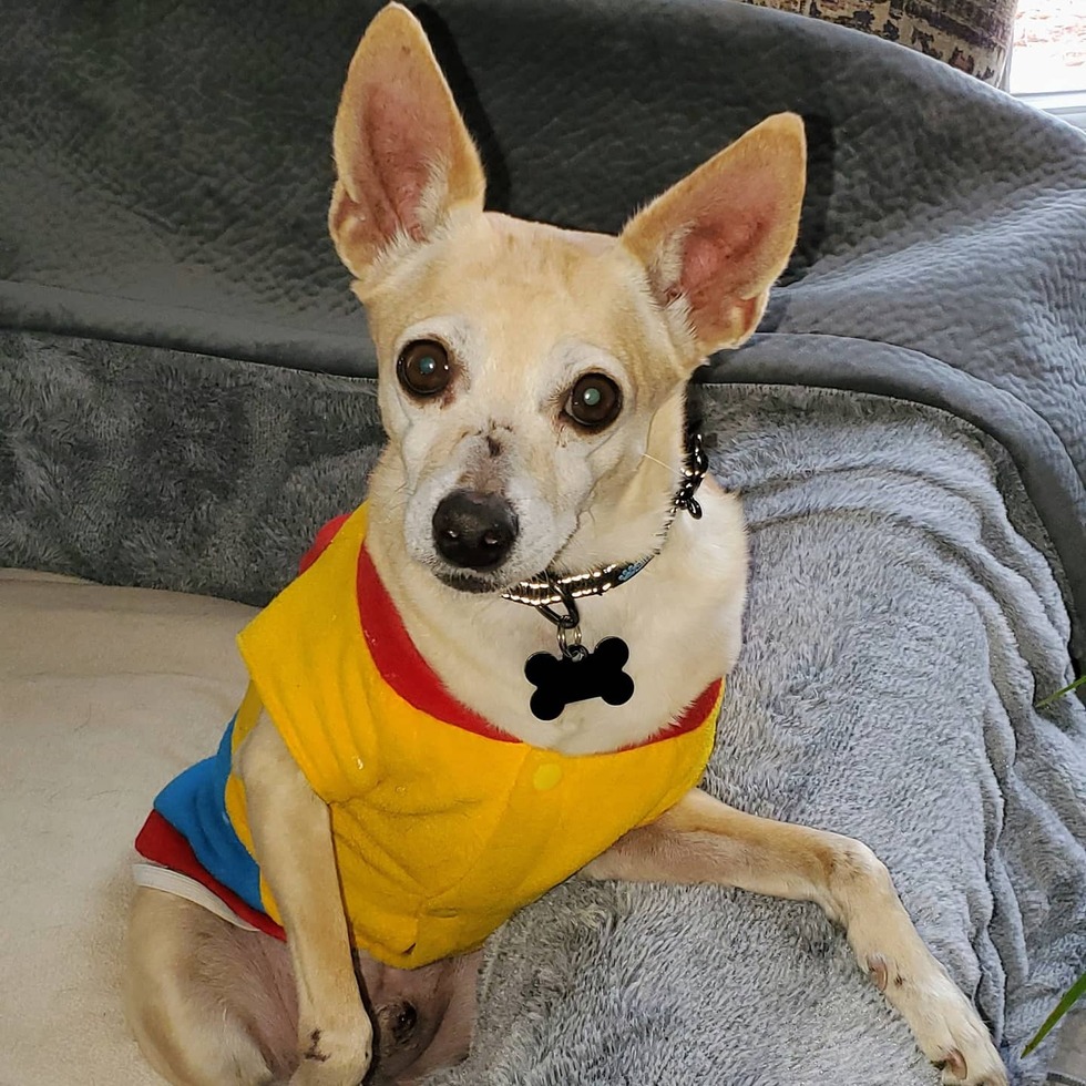 Santiago lived his first 8 years on the Mexican streets. Cherished Tails Senior Sanctuary rescued him, paid for a major operation to save his life and lots of dental work. I nursed him, taught him, and loved loving Santiago! I was his foster mom and, boy, we were lucky to find each other! He's such a sweetheart, so lovable, and only wants to be near you! He brought lots of joy and found a perfect family but due to serious illnesses of his wonderful "mom," he's back with me but continues to visit and love his other "mom." He's a lucky guy who is loved by so many and shares so much love and joy with so many!!! I'm honored Santiago joined my family!!