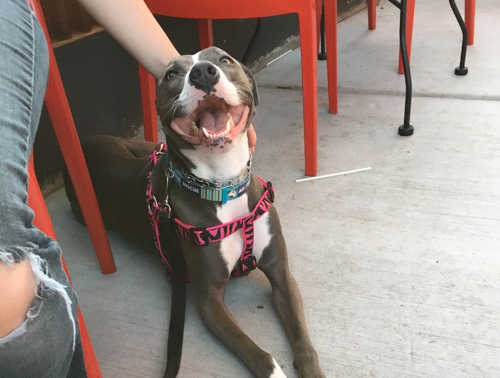 Jynx is a 10 year old American Staffy that was adopted from Smiling Dog Rescue. She loves steak, naps, and puzzle toys.