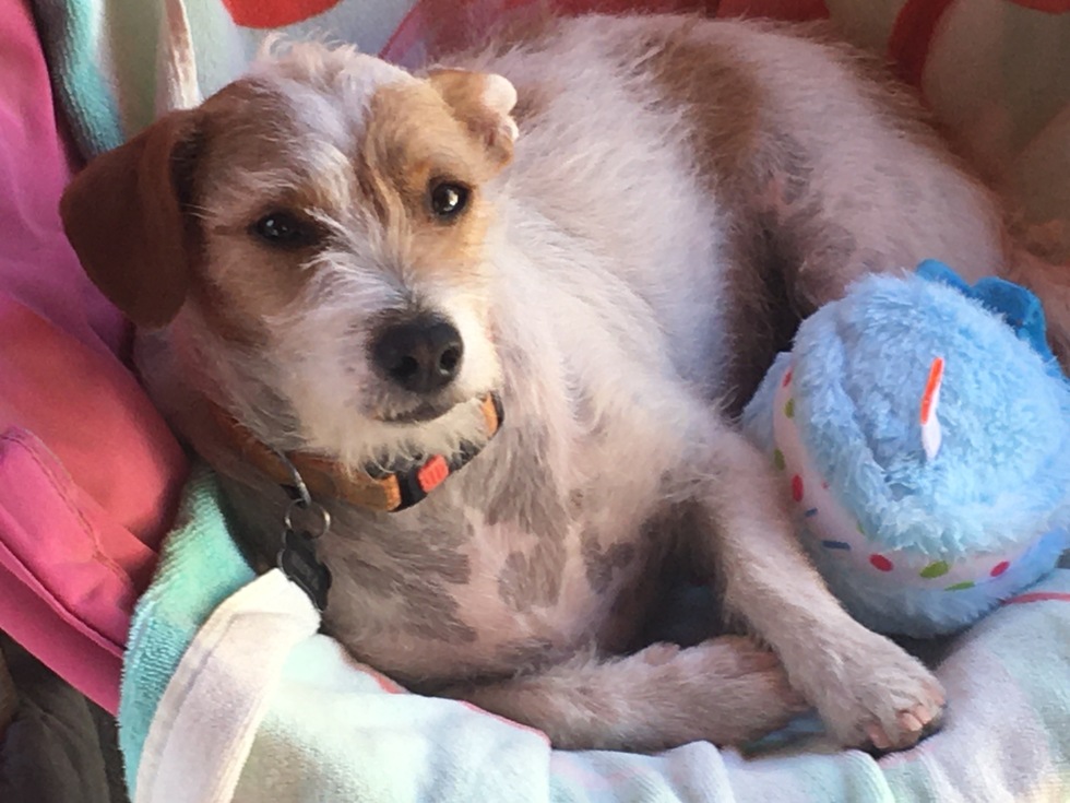 Nova was surrendered by his owners to PACC when he was 2 months old. Fortunately, Ruff Rescue found him there, and took him in. I had just lost a dog a few months before, and was looking for a playmate for my other small dog Howie. I was looking online, and couldn’t resist his cute face! The rest is history! He is the light in my life, as every day is a new and happy day to Nova!