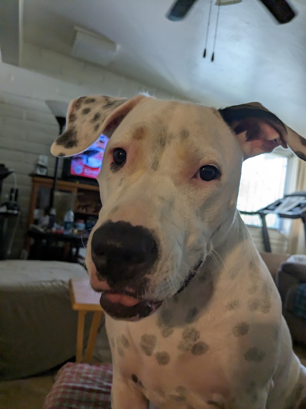 Dorothy just celebrated her birthday on the 12th. She's my 70 lb. baby, who loves to sit on me or her nana. Although she's eaten more clothing, shoes, or leather purses or wallets than all her predecessors, I wouldn't give her up for anything. ♥️
