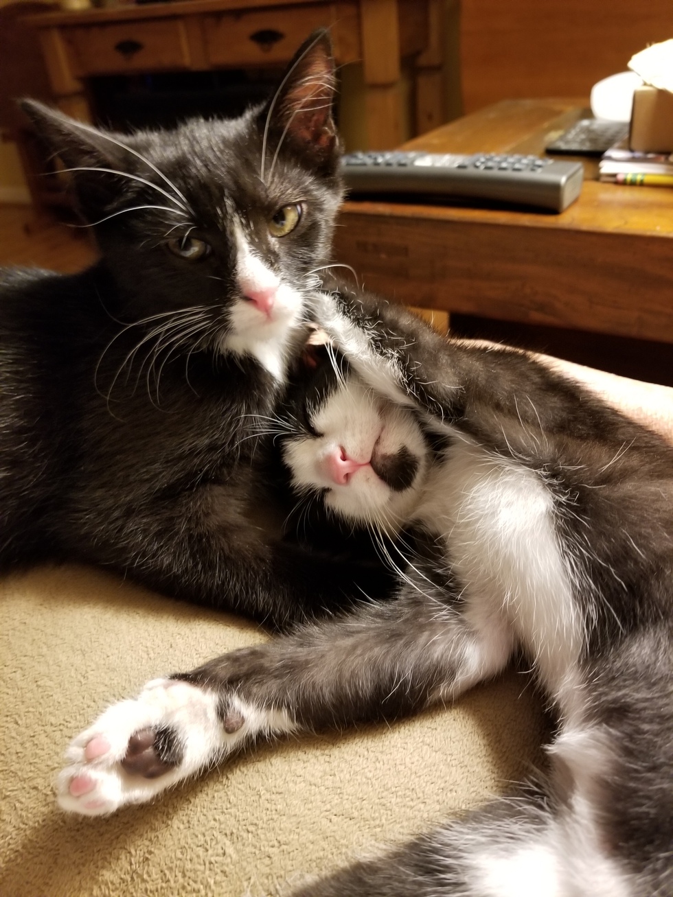 Both these kitties were adopted from ForeverLoveRescue shortly after my volunteer "career" there began. Although from different litters, they've become besties. There's just something about pink noses & toe beans ❣