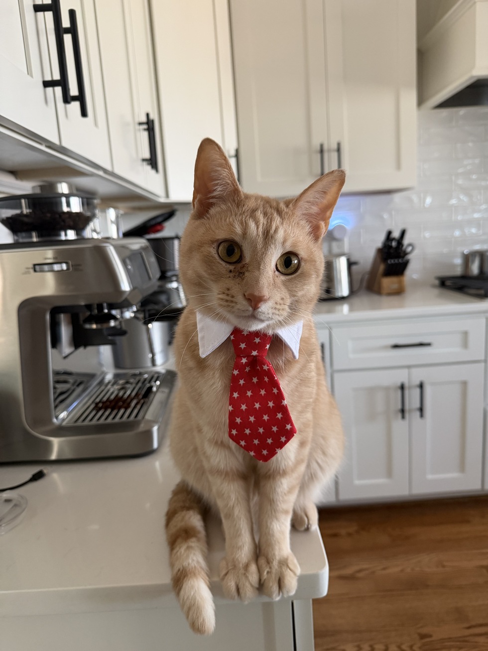 Sanders was adopted from FHS in May 2025 with his brother Ollie as a bonded pair at the age of 3! Ollie fully supports his brother's CATdidacy and says he is purrfect for the job!