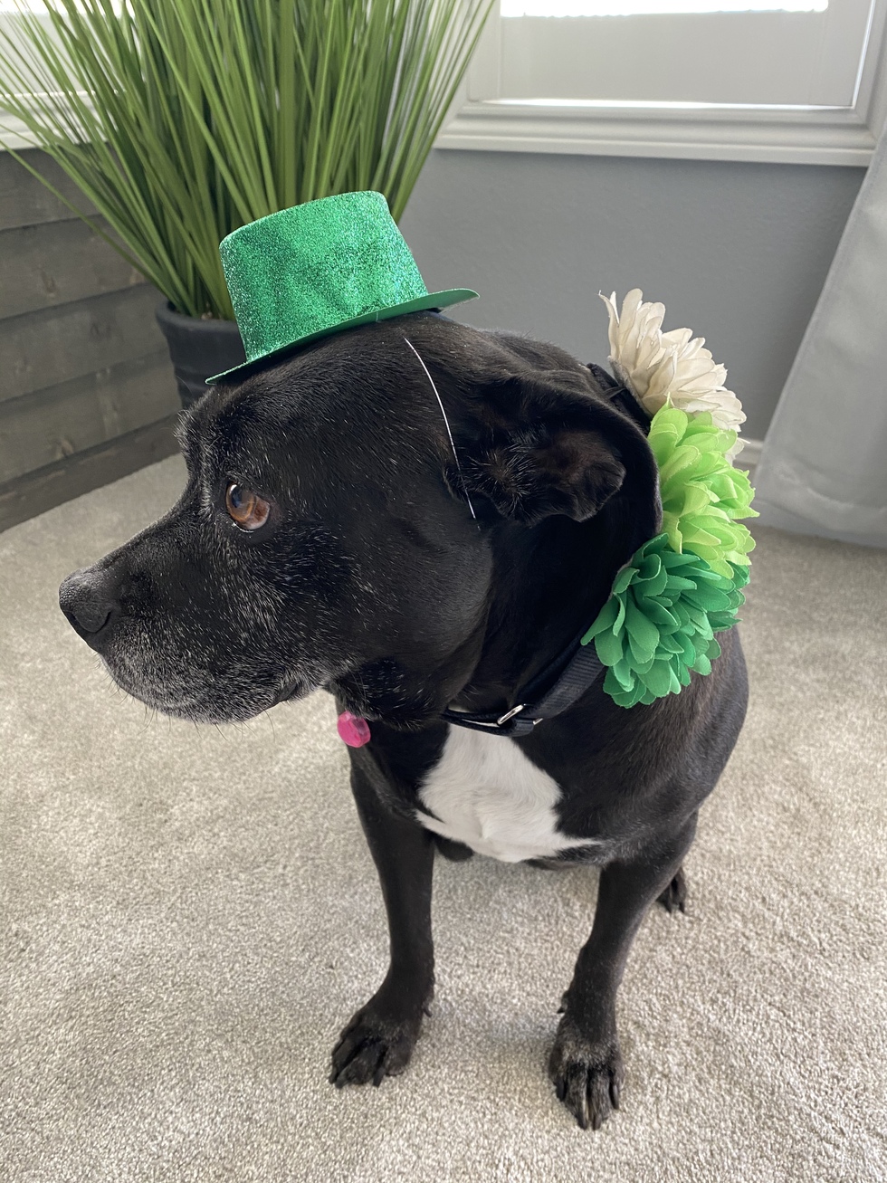 Lucky is a sweet and loyal 9 year old Stafford Bull Terrier (we think - lol). She LOVES to get pets and go on walks. After her walks she has to take a nap and being a senior, Lucky Insists on a last walk by 7pm so she can go to bed! Lucky is a very private lady and is a little camera shy. She loves her humans and lays by us and supports us emotionally as much as she can. Lucky likes to chase rabbits, say hi to all the dogs in our neighborhood and taking a golf cart ride to the big dog park really gets her smiling.