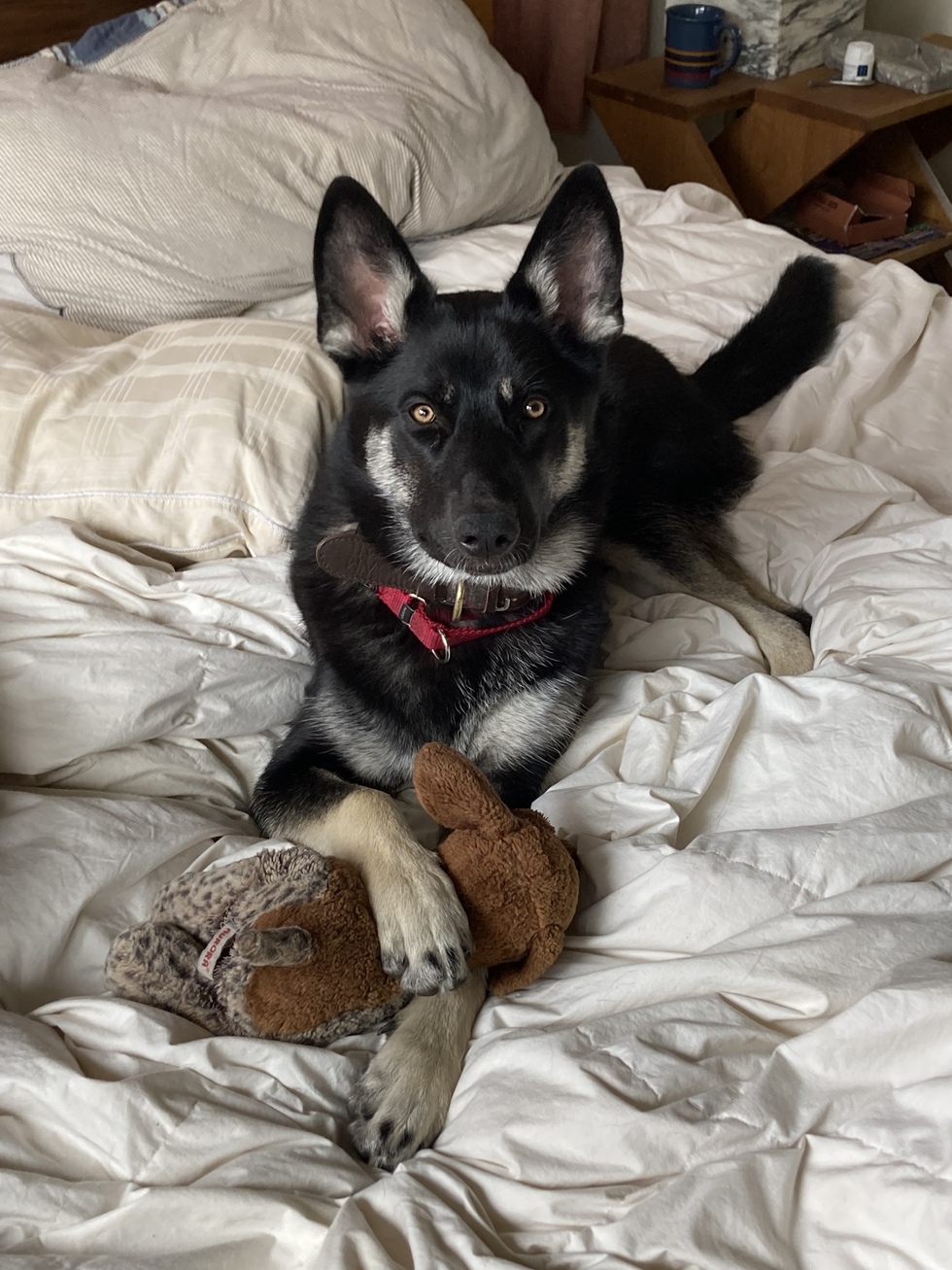 Zeta is 10 months old. She loves long walks, wrestling and belly rubs. Especially belly rubs. She is such a sweetie and everyone loves her! We love having her as part of our family.