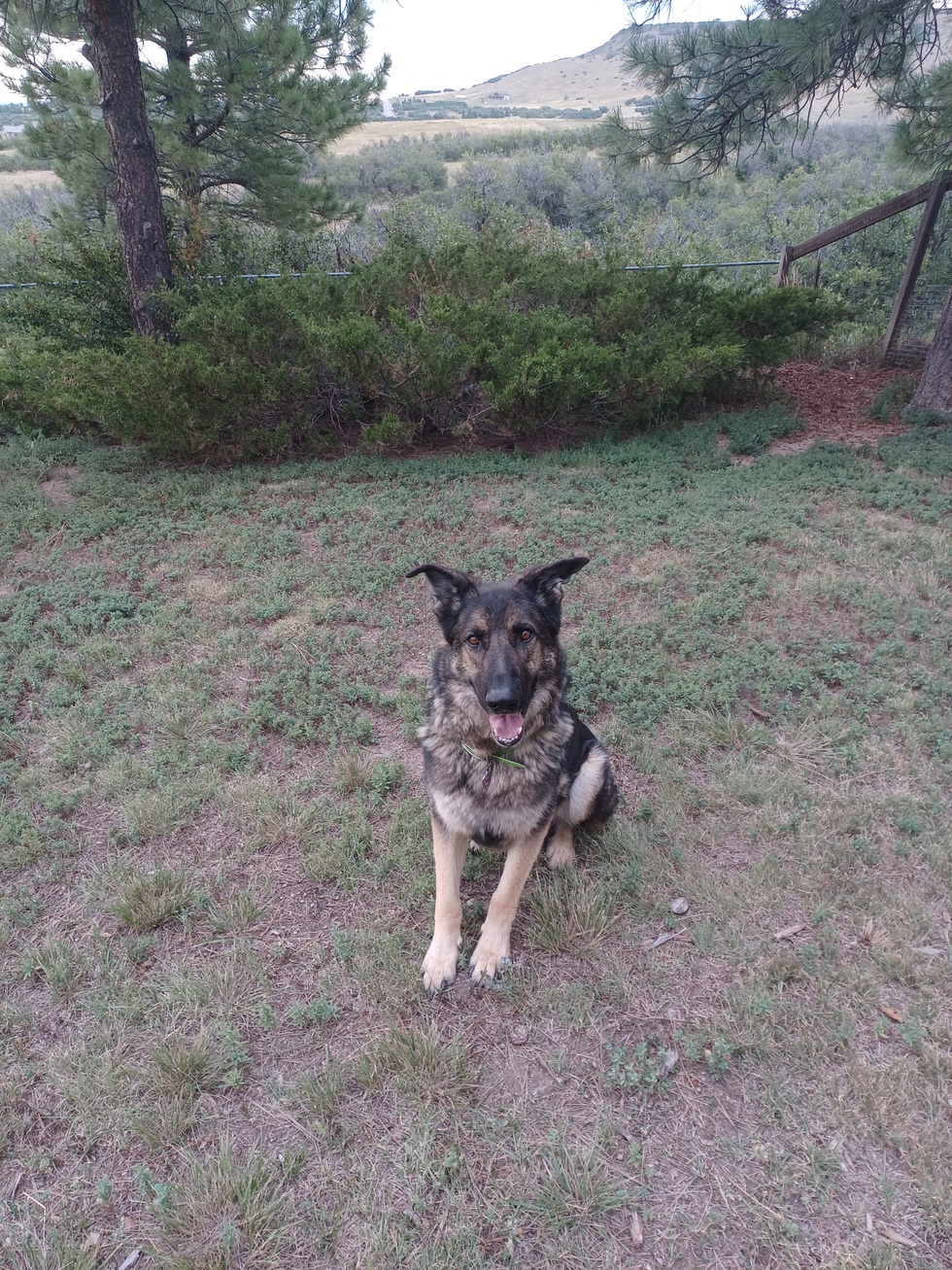 Adopted from Front Range, he and his brother Kaiserr temporarily rehomed, now both have permanent homes. Jaeger owns the back yard.
