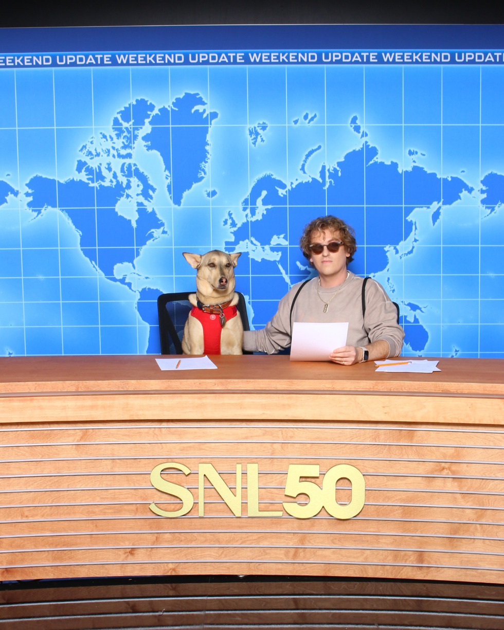 In this photo Keeva is not amused by the weekend update (taken at the SNL 50 anniversary celebration)