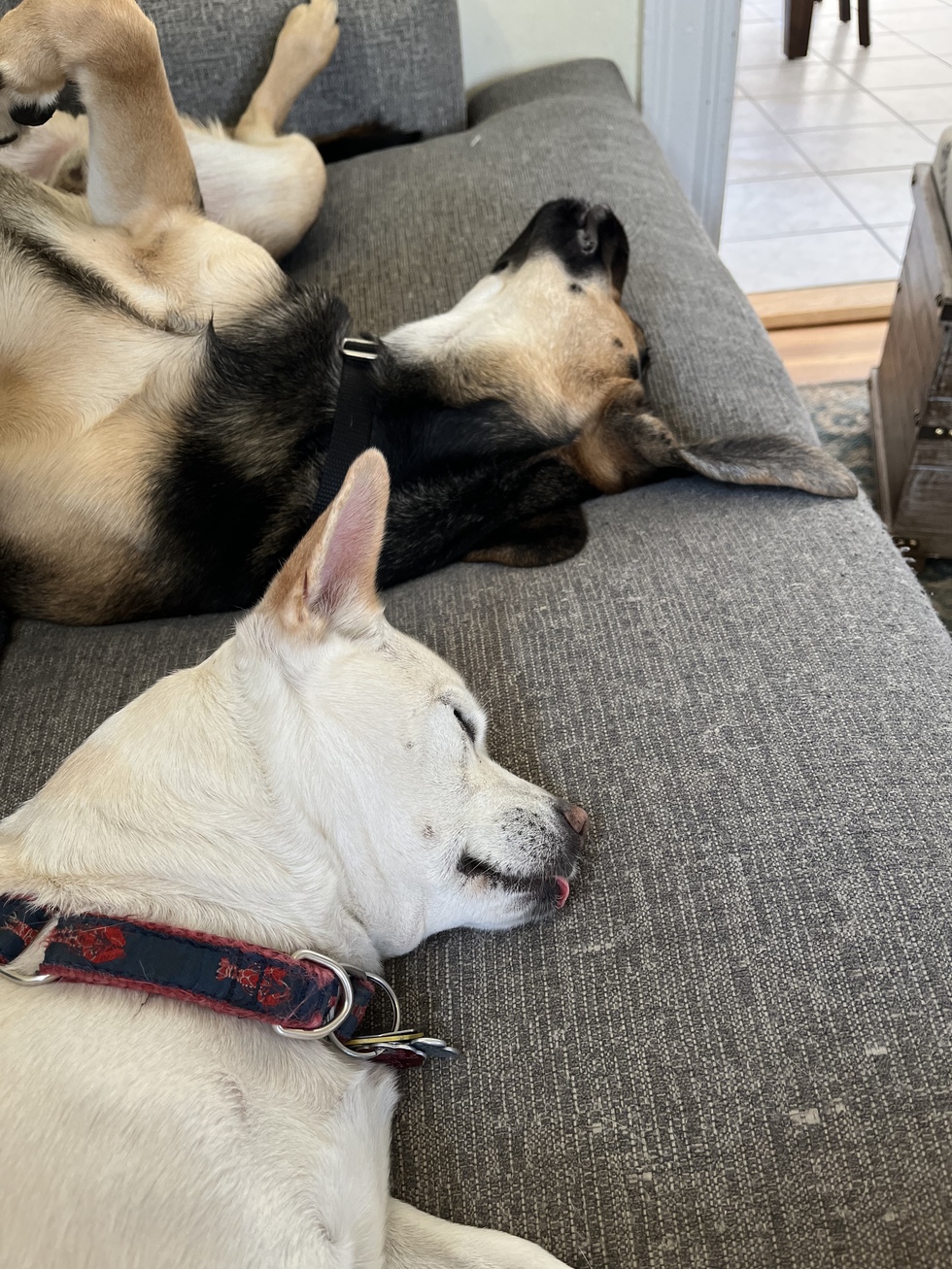 Murdock is a 12 year old Shiba Inu mix. Murdock was saved by National Mill Dog Rescue when he was found roaming the streets of Denver. Someone blinded Murdock when he was a puppy and he suffered horrible abuse. He has had a long journey but found his forever family in 2013. He likes to sleep with his tongue out and loves his puppy friend, Apollo, who acts as his guide dog and helps him feel safe. Murdock likes to cuddle with his human mom and howls when his human baby cries. He keeps his distance from people but once you earn his trust he loves you with all his heart.