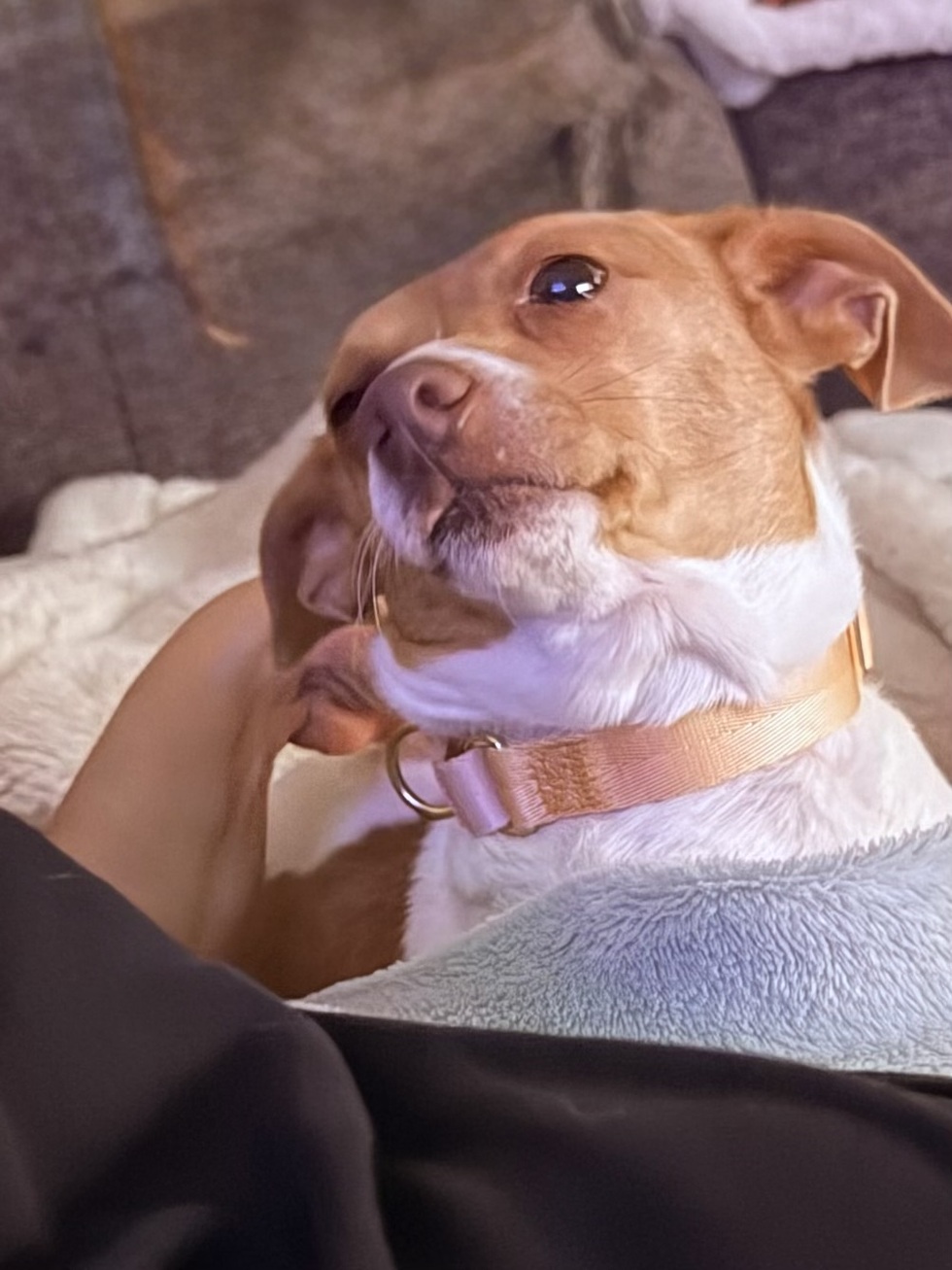 We adopted Alba in October. She was very afraid at first. She’s made big strides. We’re still working at it, but we’ll get there! We adore her! ❤️❤️❤️❤️