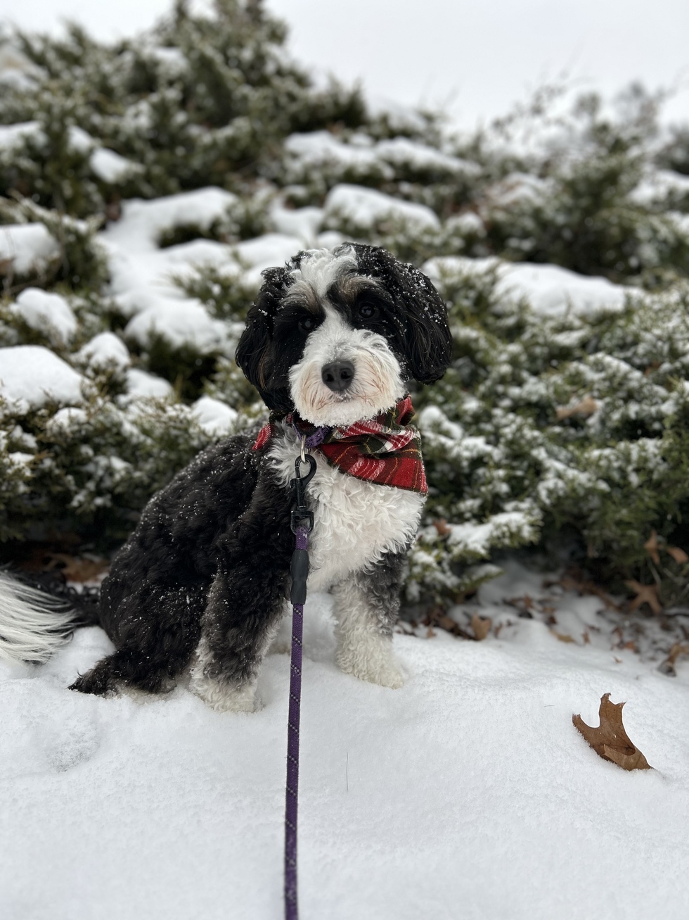 Betty is a sweet mini Bernedoodle (half mini Poodle, half Bernese Mountain Dog) who we rescued in January 2024. She is now around 2 years old, but she spent nearly the first year of her life confined to a puppy mill. Since we’ve had her, she’s blossomed into a confident and joyful pup. Betty loves playing with toys, often throwing them for herself, and gets so excited to greet her favorite humans by jumping up and down on her back legs. She’ll also bark to let us know it’s time for some fun! She’s become quite the local celebrity, with people often stopping to give her attention when we go on walks. One of her favorite things is trying to jump up onto the countertop at our local dog-friendly coffee shop, especially when she hears the baristas preparing the treat bowl!