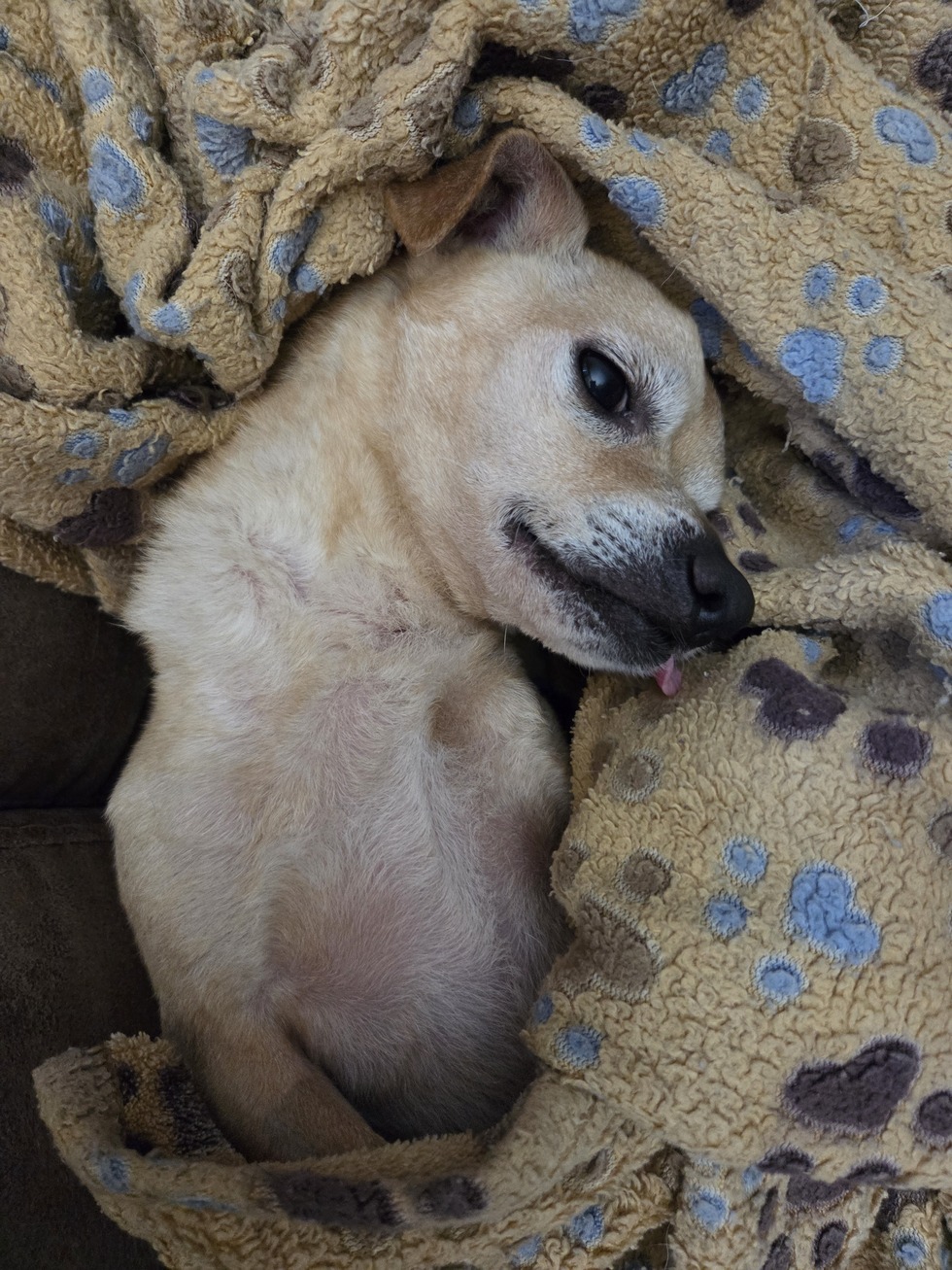 We adopted Kobe fka Clive in July 2025 through Gals Best Pal. He is an approx 10 year old chihuahua mix. He was rescued in Houston and fostered in Massachusetts. Although he has no teeth that does not hinder his appetite or ability to eat anything his little heart desires (within reason of course ;) He has brought us so much joy and laughter. He gets along great with his older sister Kona a 14 y/o lab mix. They love to do zoomies, play chase, and sunbathe in the backyard and then snuggle under the covers together. Two peas in a pod.