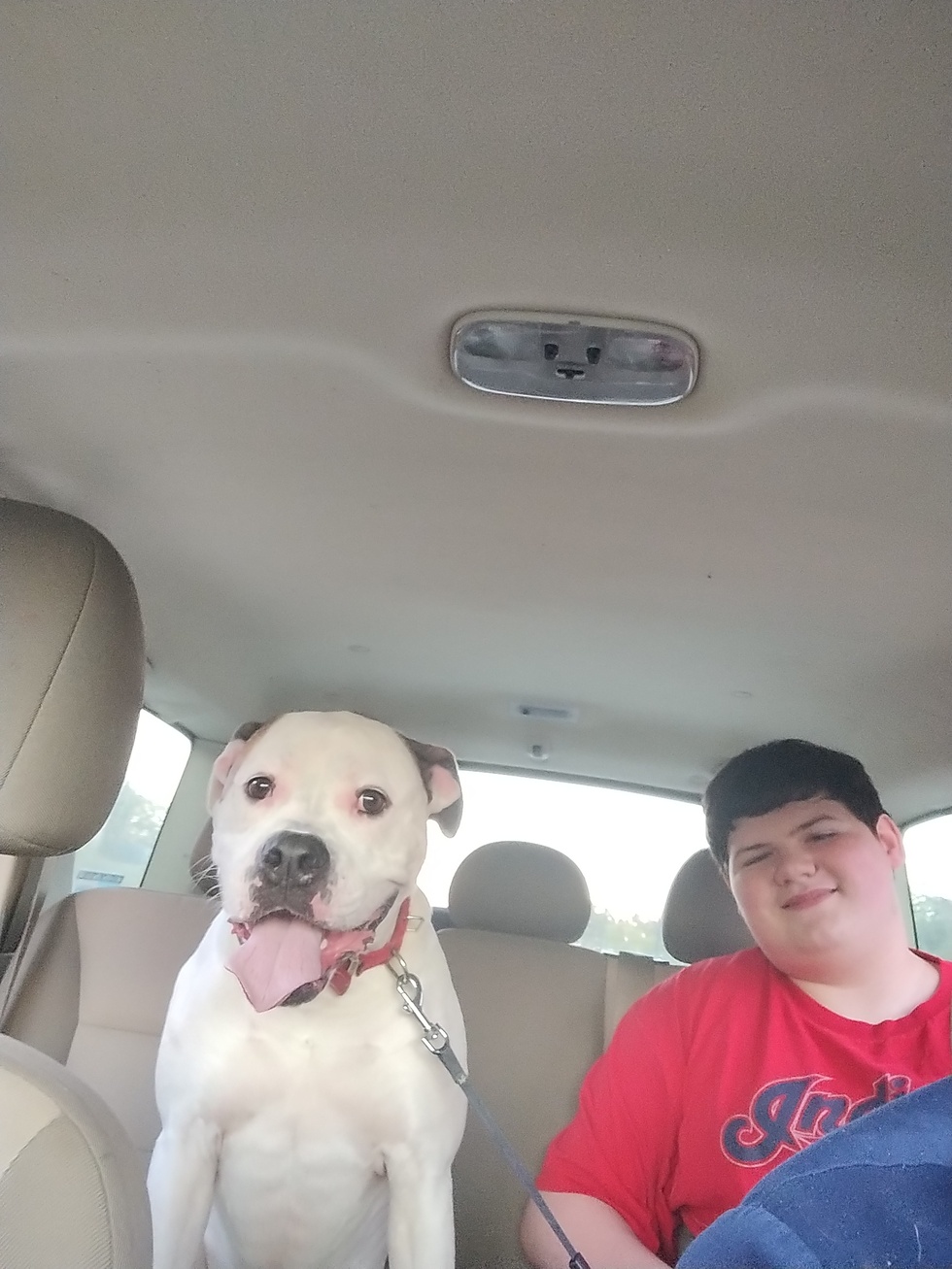 Earbud is a boxer mix he is loveable and loves cuddling. He love his treats and taking naps.