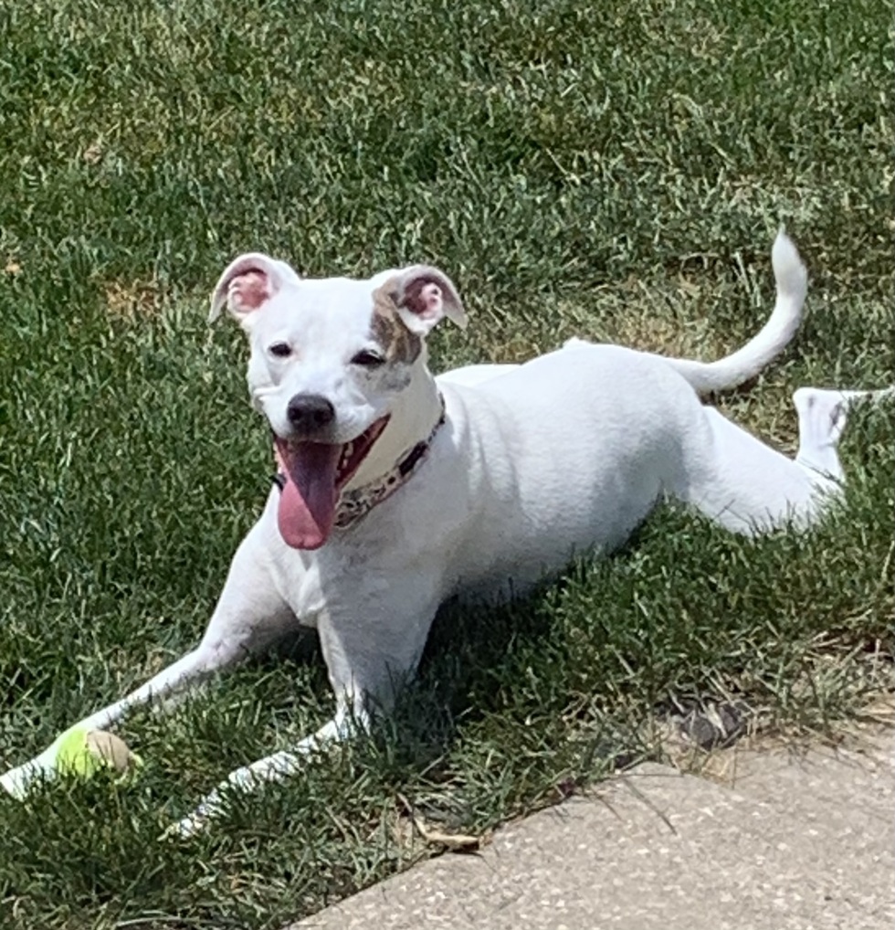 Lola is 9 years old. She will always greet you with a toy in her mouth ready to play!