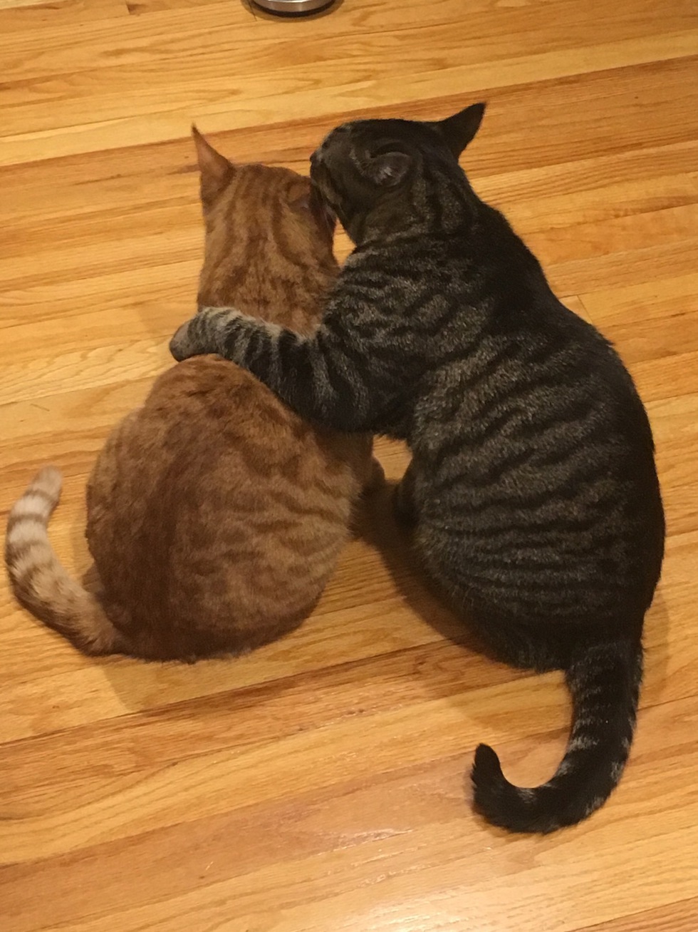 These two boys were adopted in October 2018 from a local shelter. They were not bonded, but have become fast friends.