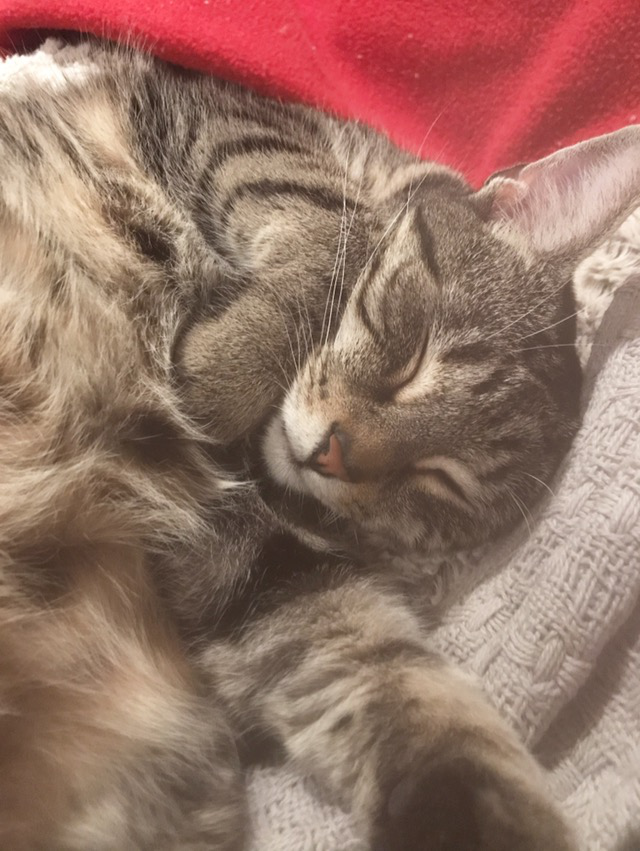 We call her perfect Peggy! Peggy was rescued in Florida and adopted from Gifford in December. She loves her new home with us and alternates her time between window television and following Maia around.