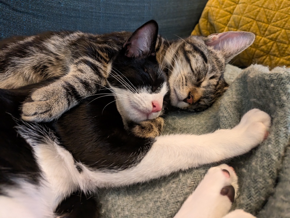 We adopted Hiccup and Darla from Gifford in July and since then they have become best buds. Zooming around the house, WWE style wrestling matches, cuddling up on their humans--it's a good life!