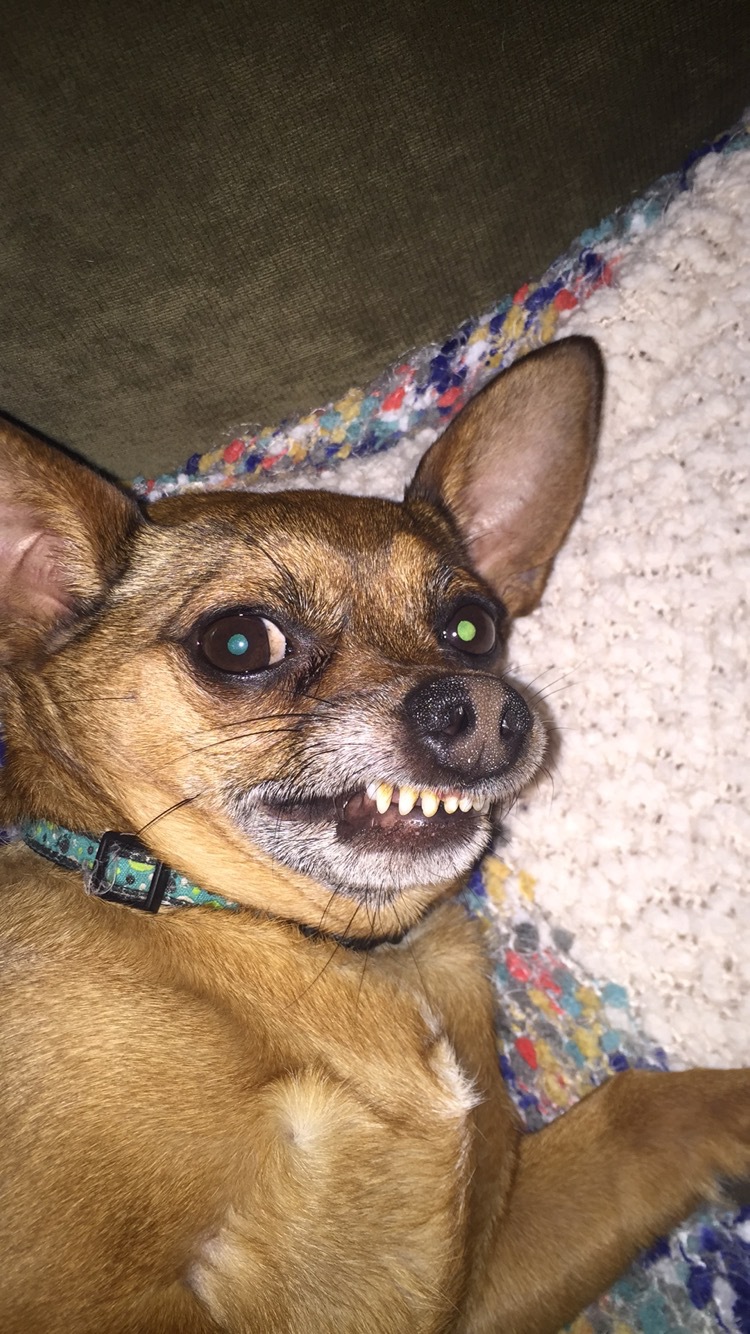 My sweet rescue dog chipotle has a major overbite, and sometimes he looks at me with this sweet, ridiculous look on his face because his lip gets stuck. And I love it. He's just the best.