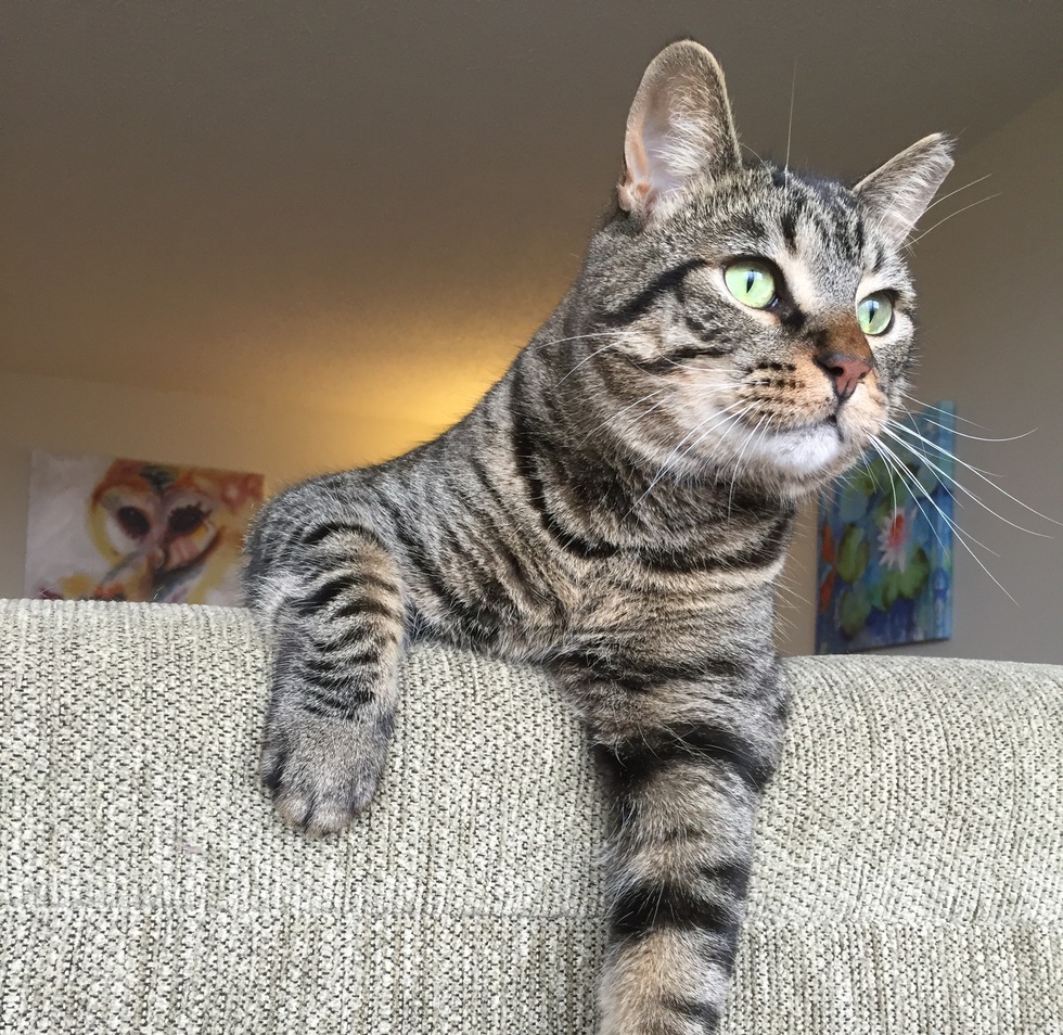 Lucas is a big sweet boy who loves playing and eating snacks! Lucas starting out living in a feral cat colony in the Toronto area, he was then transferred to the Guelph Humane Society where we found each other! Lou was very shy and scared at first but with lots of love and patience he slowly learned to love and trust his human family and is now a complete snuggle bug! Lou is a great reminder to not pass over the shy cats at the shelter, they are great animals who just need someone to believe in them!